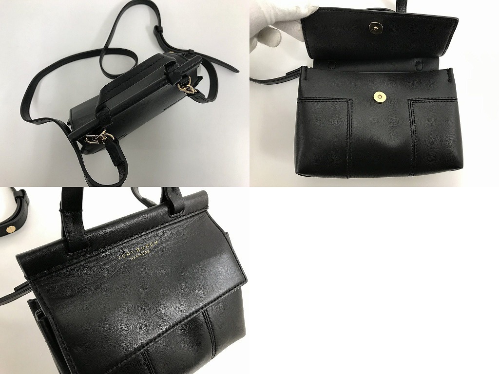商品説明TORY BURCH 程よいきちんと感で魅せる!ブロックT ミニサッチェル 2WAY 小さめハンドバッグ ショルダー鞄 黒 でございます。  小さめサイズでおとなカワイイ印象の2WAYバッグです。 シンプルなデザインながらも美しい光沢と正面のブランドロゴで高級感のある佇まいに。  程よいマチと内ポケットが備わり、実用性も十分。  きれいめなスタイルはもちろん、デニムなどのカジュアルな着こなしにもマッチします。