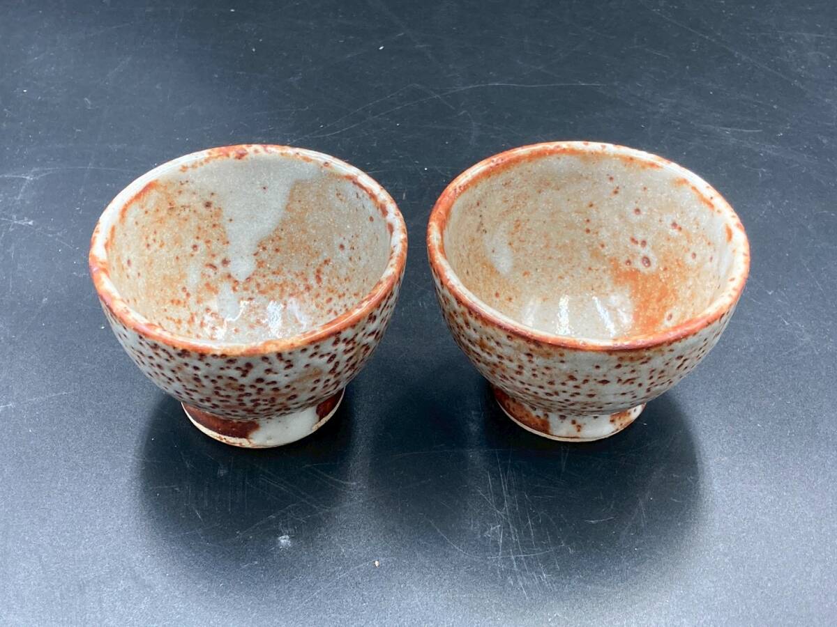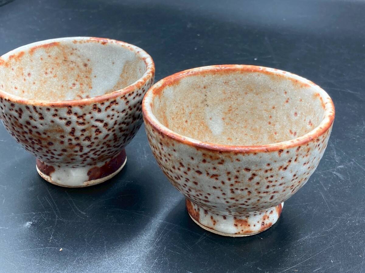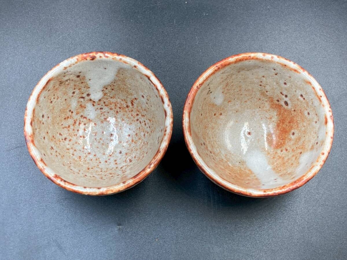 湯呑 茶器 中古 美品 高さ6.3㎝ 直径9㎝ 煎茶道具 碗 和食器 2点 茶托 陶器 焼き物 箱無し オレンジ *B1157-4*