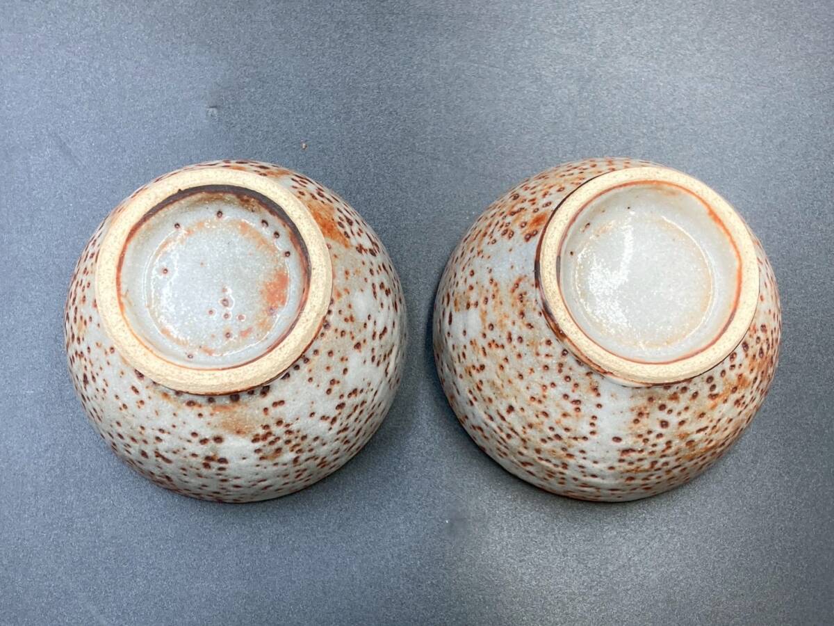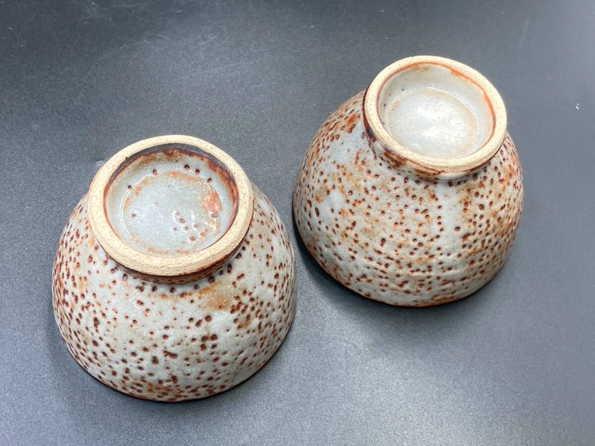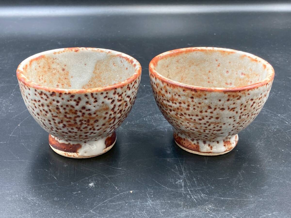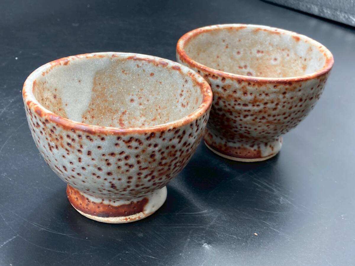 湯呑 茶器 中古 美品 高さ6.3㎝ 直径9㎝ 煎茶道具 碗 和食器 2点 茶托 陶器 焼き物 箱無し オレンジ *B1157-4*