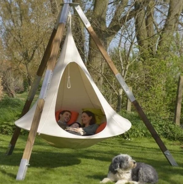 【カーテンデザイン】ハンモックにはカーテンが付いており、それはあなた自身の小さなスペースになります。ハンモックは、夏でも空気の流れを確保するために十分に換気されています。 洗って清潔に保つことができます。秘密の拠点、大人の癒しの拠点として包まれたプライベートスペースをお楽しみください。
