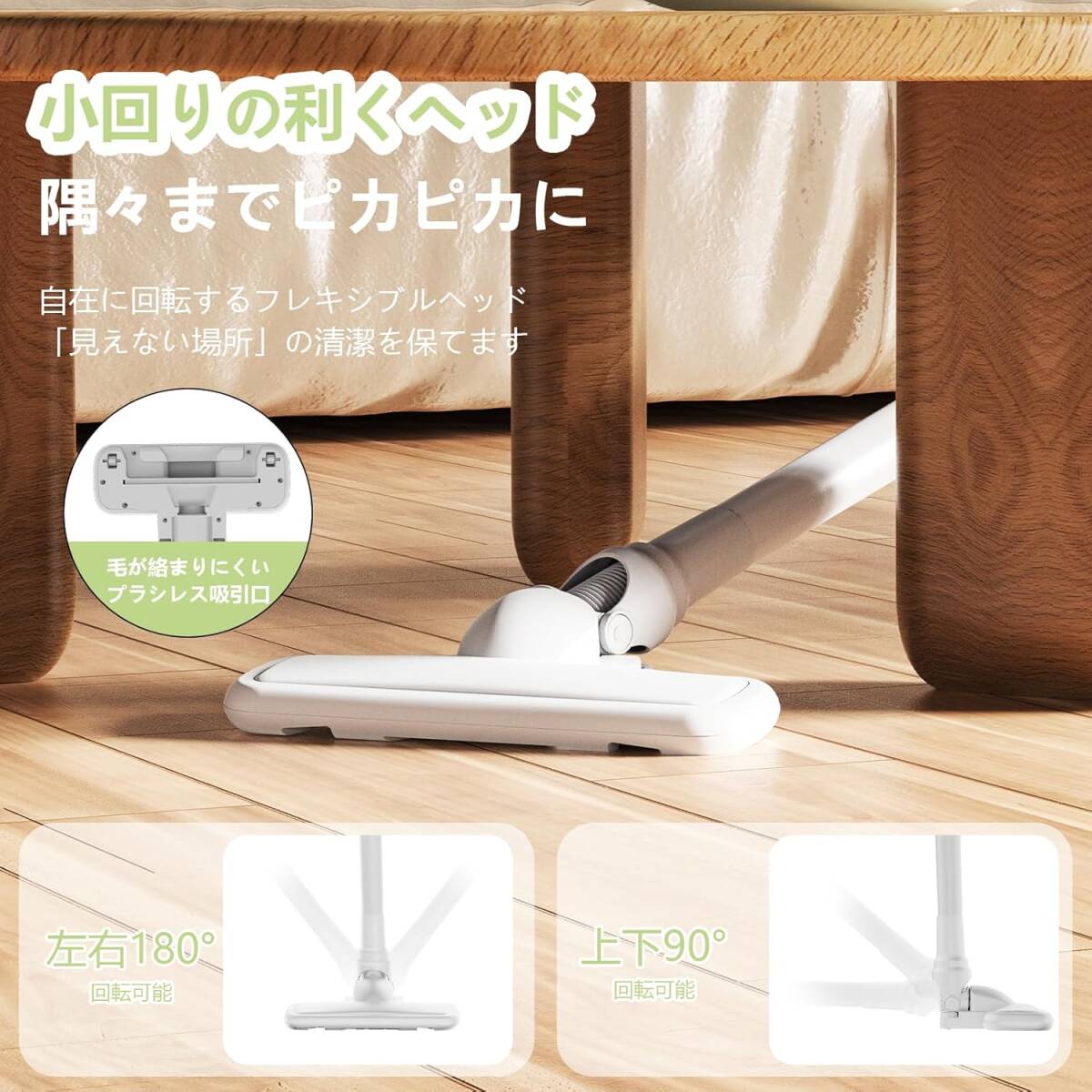 • 【28000Pa強力吸引とブラシレスヘッド】軽量と強い吸引力を両立し、優れた清掃性能を発揮しています。最大驚きの28000Paの吸引力を持ち、ホコリから猫砂までぐんぐんと吸い込め、家事を楽にします。さらに、ローラーブラシを使用しなく、吸引口の設計を採用し、ブラシへの毛の絡まりを軽減し、強力な吸引カともにゴミを直接吸い込めます。ペット好家や長髪にしている人に最適で、汚れや毛を簡単に拾い、掃除が楽になります。