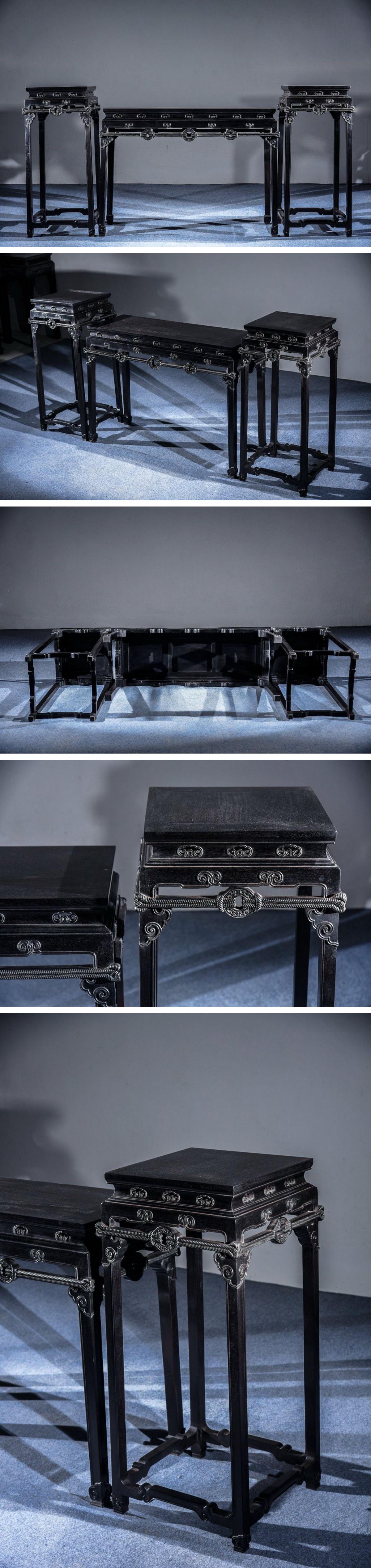 【清】某有名オークション購入 清時代 紫檀木 中堂家具三点セット 材質保証 古置物 古擺件 古美術 時代コレクション7L10-IB5