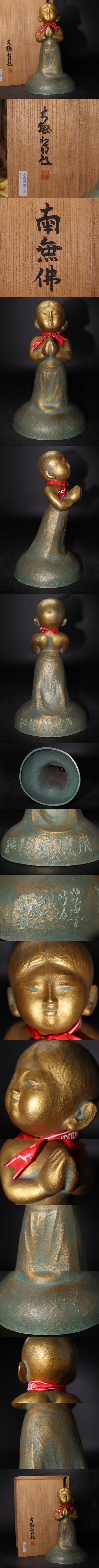 | 大内青圃 作 ブロンズ 南無佛 共箱付 / 仏教美術 仏像 銅 彫金 金工 置物 煎茶飾 .G2853 |
