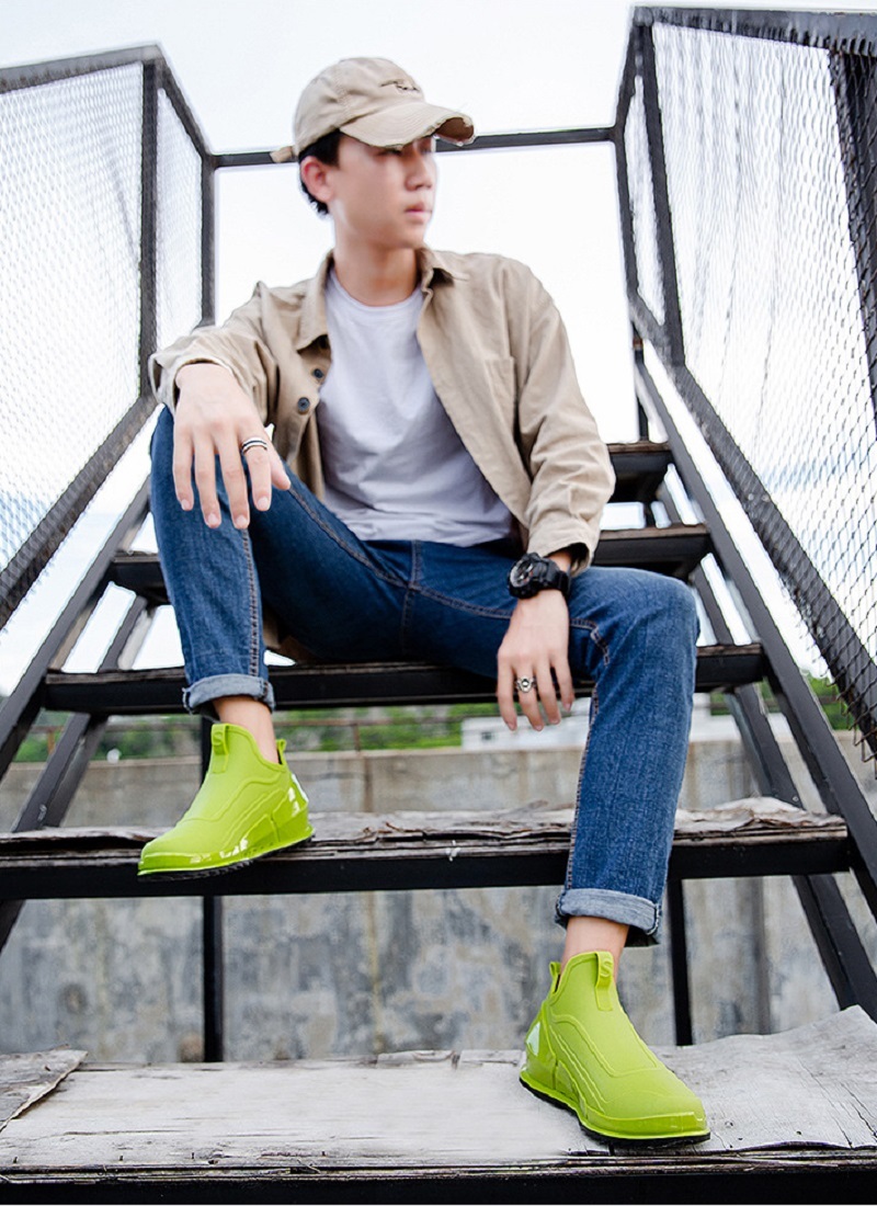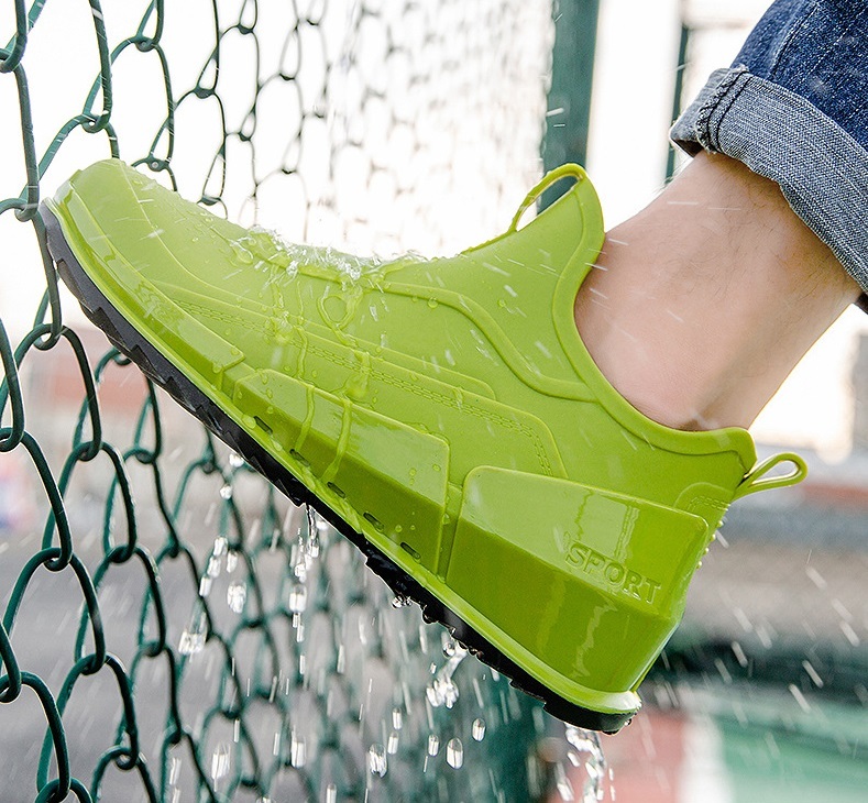 レインシューズ レインブーツ メンズ 雨靴 歩きやすい 防水 サイドゴア スニーカー おしゃれ 防滑 梅雨対策 エナメル グリーン 26cm