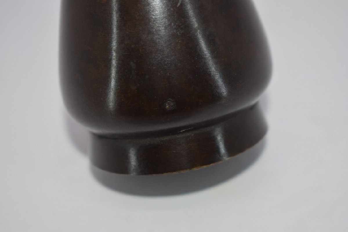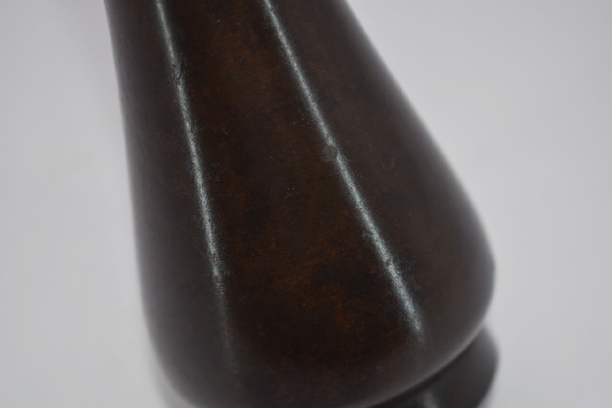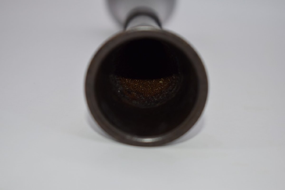 花入 唐銅 古銅 束綿 たばねわた 花入宗喜 作 花瓶 茶道 08-9202 径5.3cm 高さ27.5cm サビ、汚れ、擦れ、木箱の汚れはありますが、本体はしっかりしています、お稽古にお使いになるには差し支えありません。注)水漏れの確認はしていません。