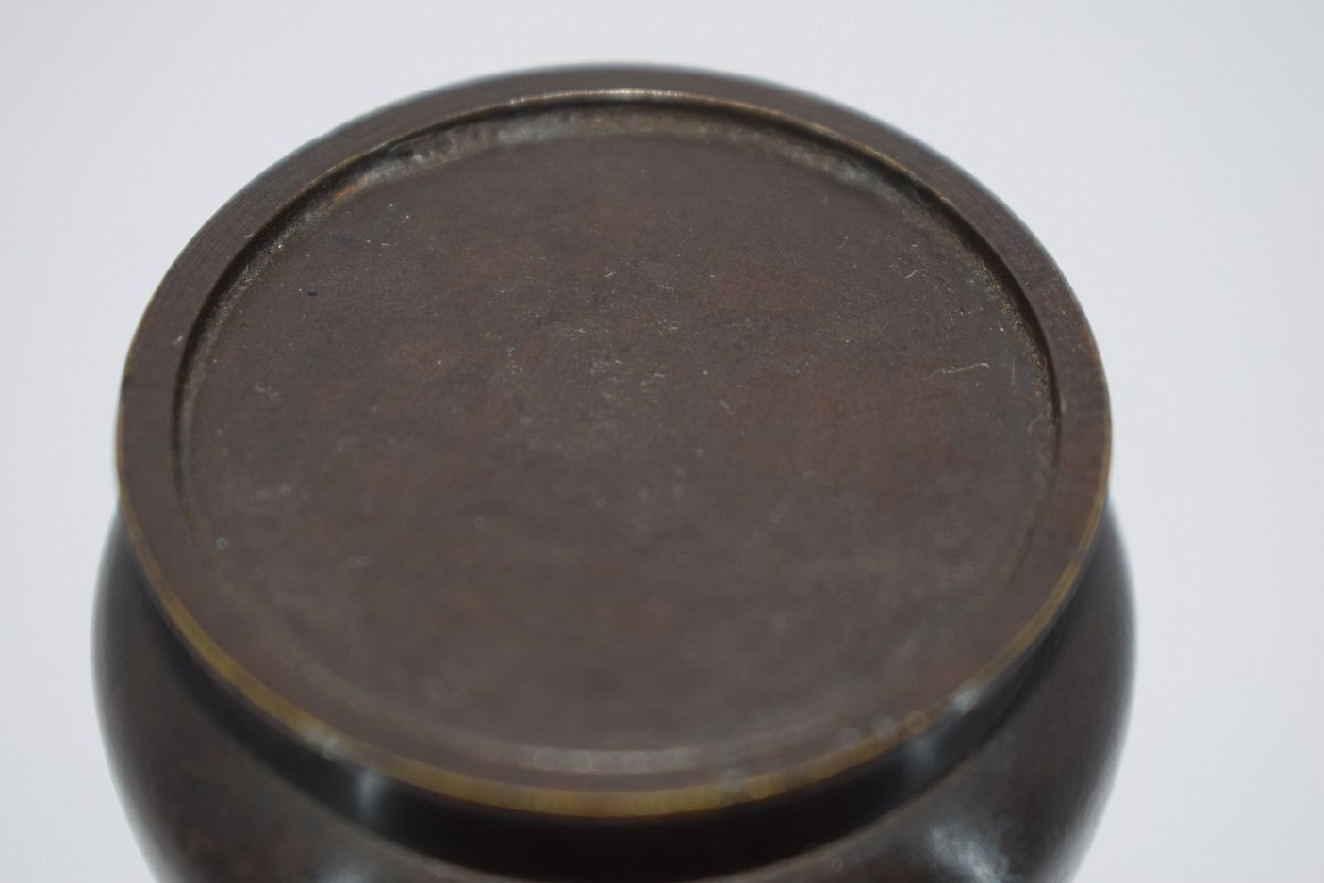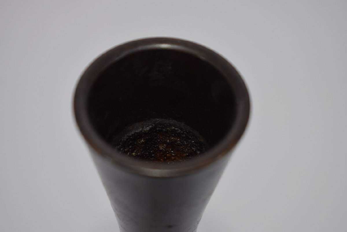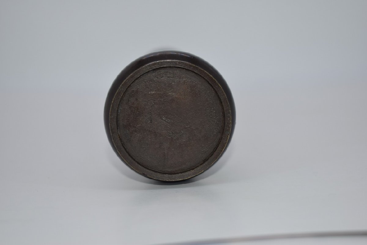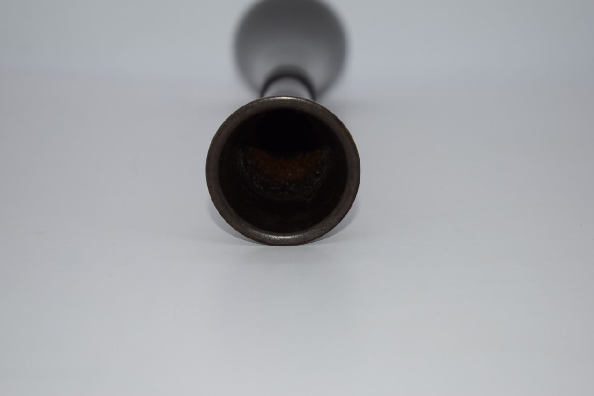 花入 唐銅 古銅 束綿 たばねわた 花入宗喜 作 花瓶 茶道 08-9202 径5.3cm 高さ27.5cm サビ、汚れ、擦れ、木箱の汚れはありますが、本体はしっかりしています、お稽古にお使いになるには差し支えありません。注)水漏れの確認はしていません。