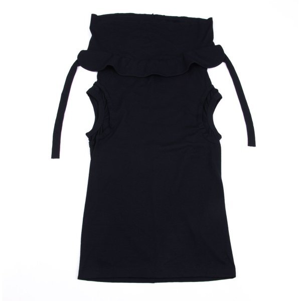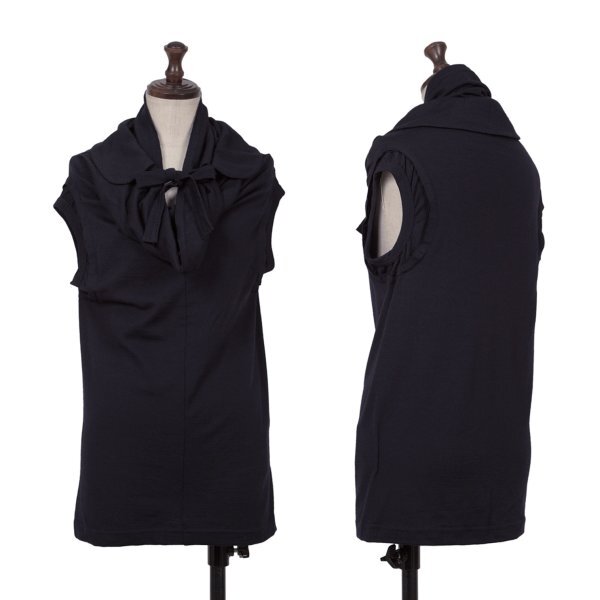 | コムデギャルソンCOMME des GARCONS ウールラウンドカラーコードデザインノースリーブトップス 紺S位 |