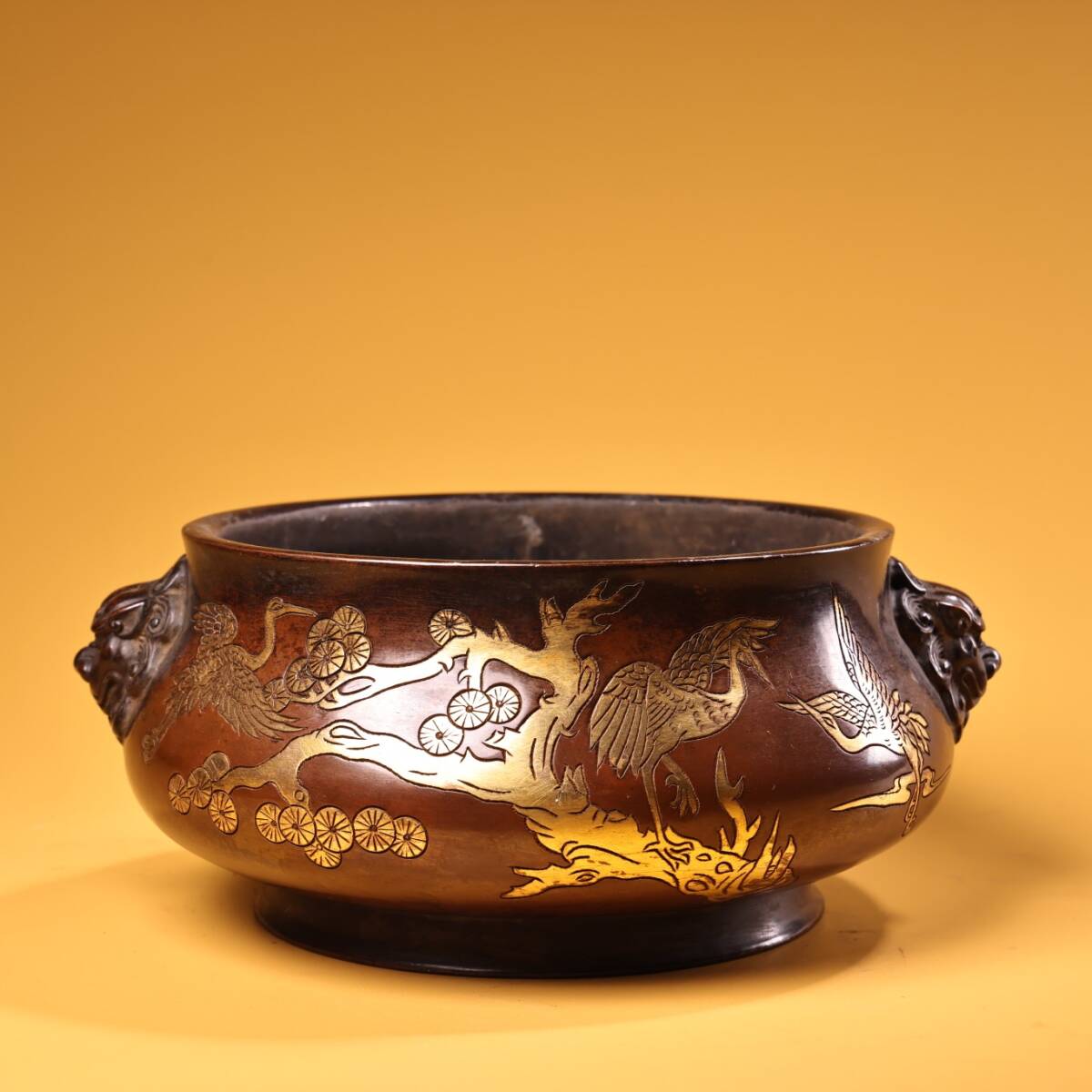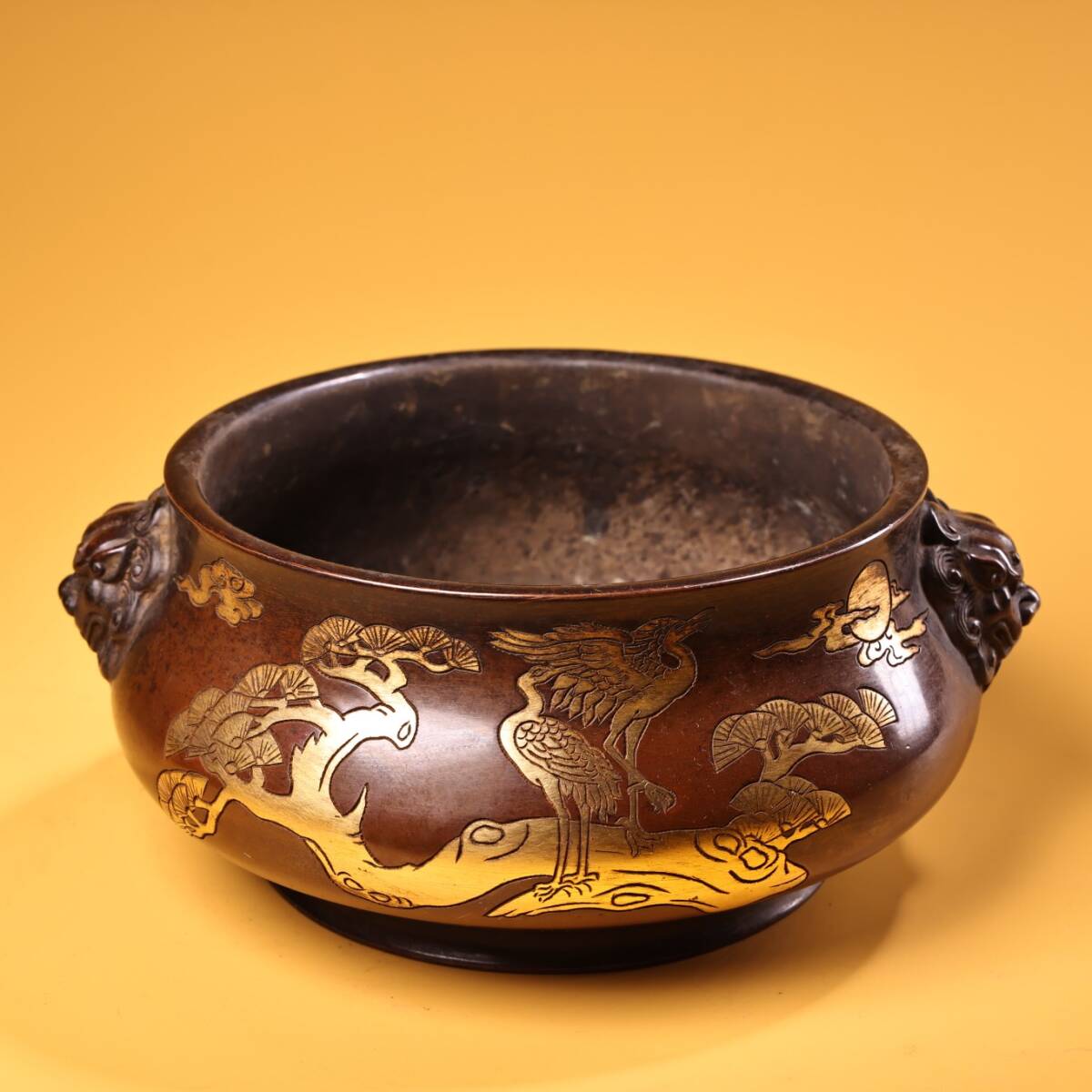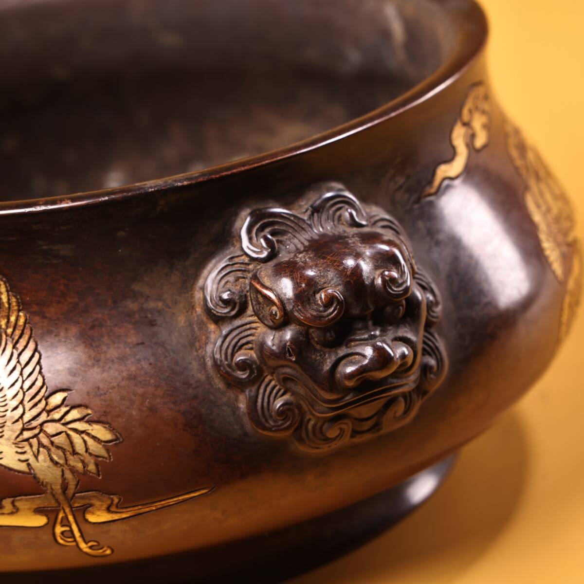 唐物 仏像 清時代 古銅 銅彫紫銅高浮雕鏨花工藝金香爐 仏教古美術 廃寺旧蔵 廃寺買出品 供養品き時代物 古置物 中国古玩 骨董品 旧家蔵出