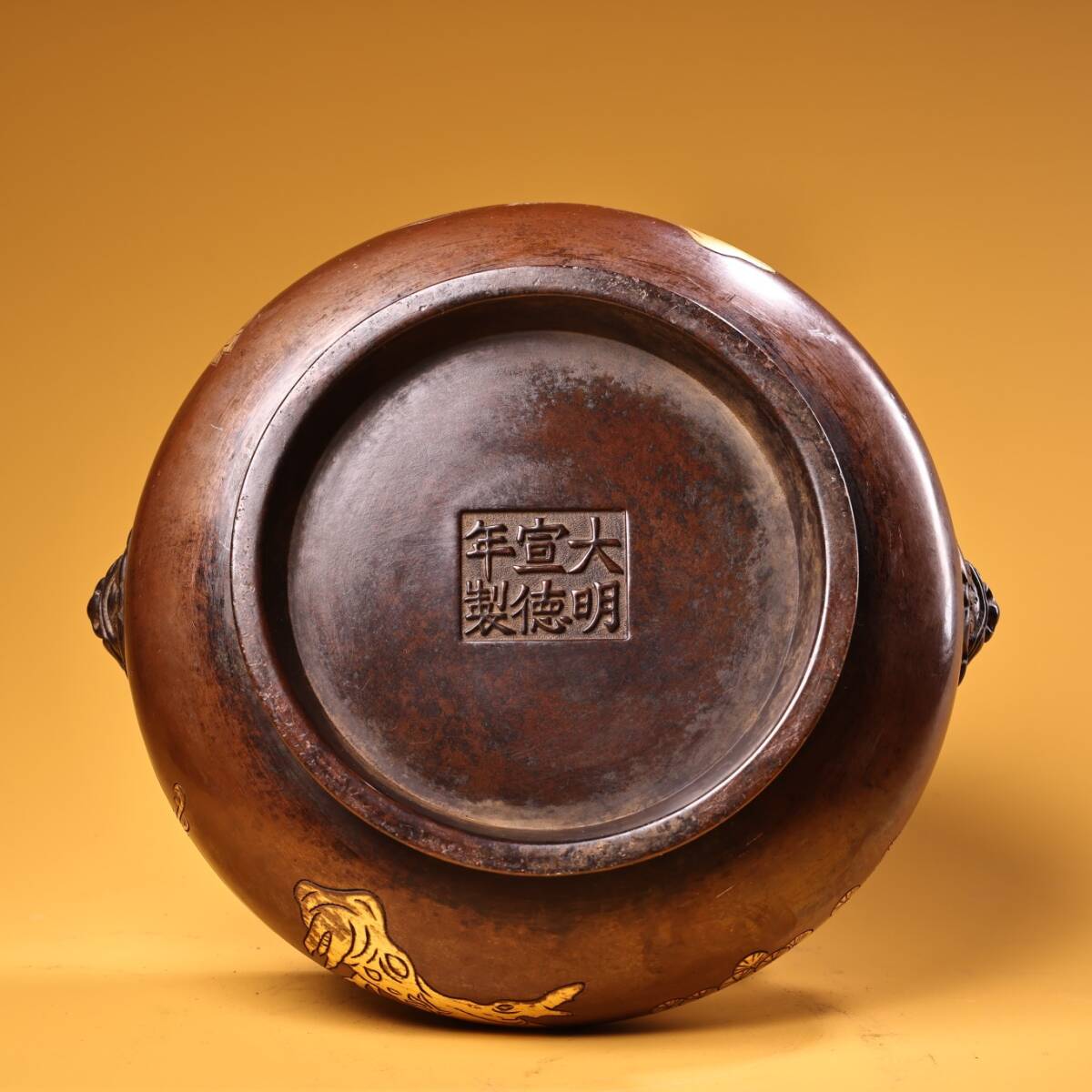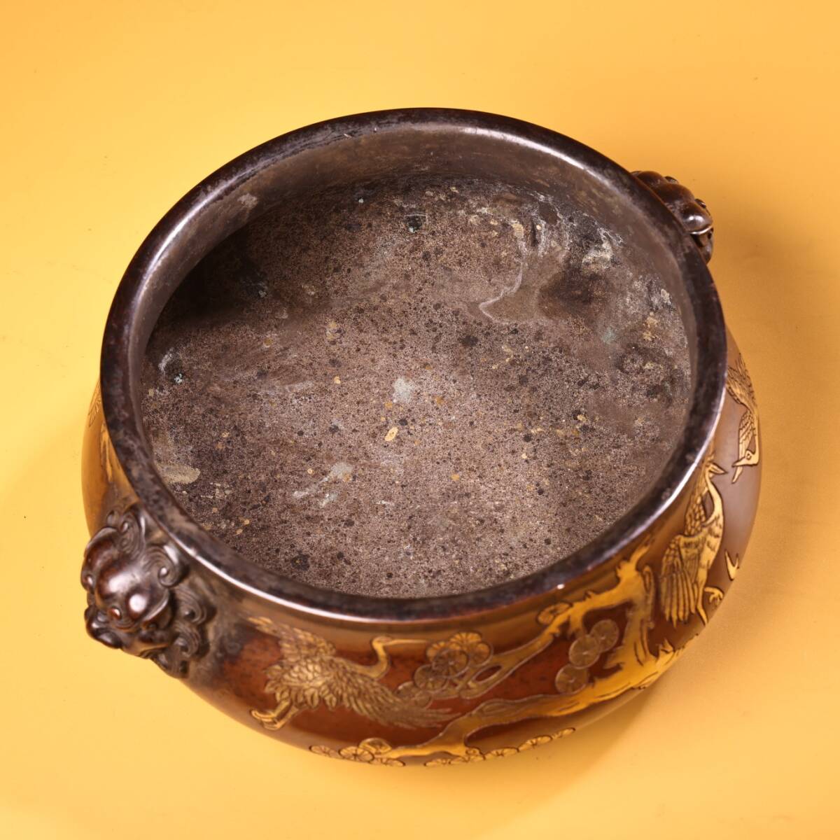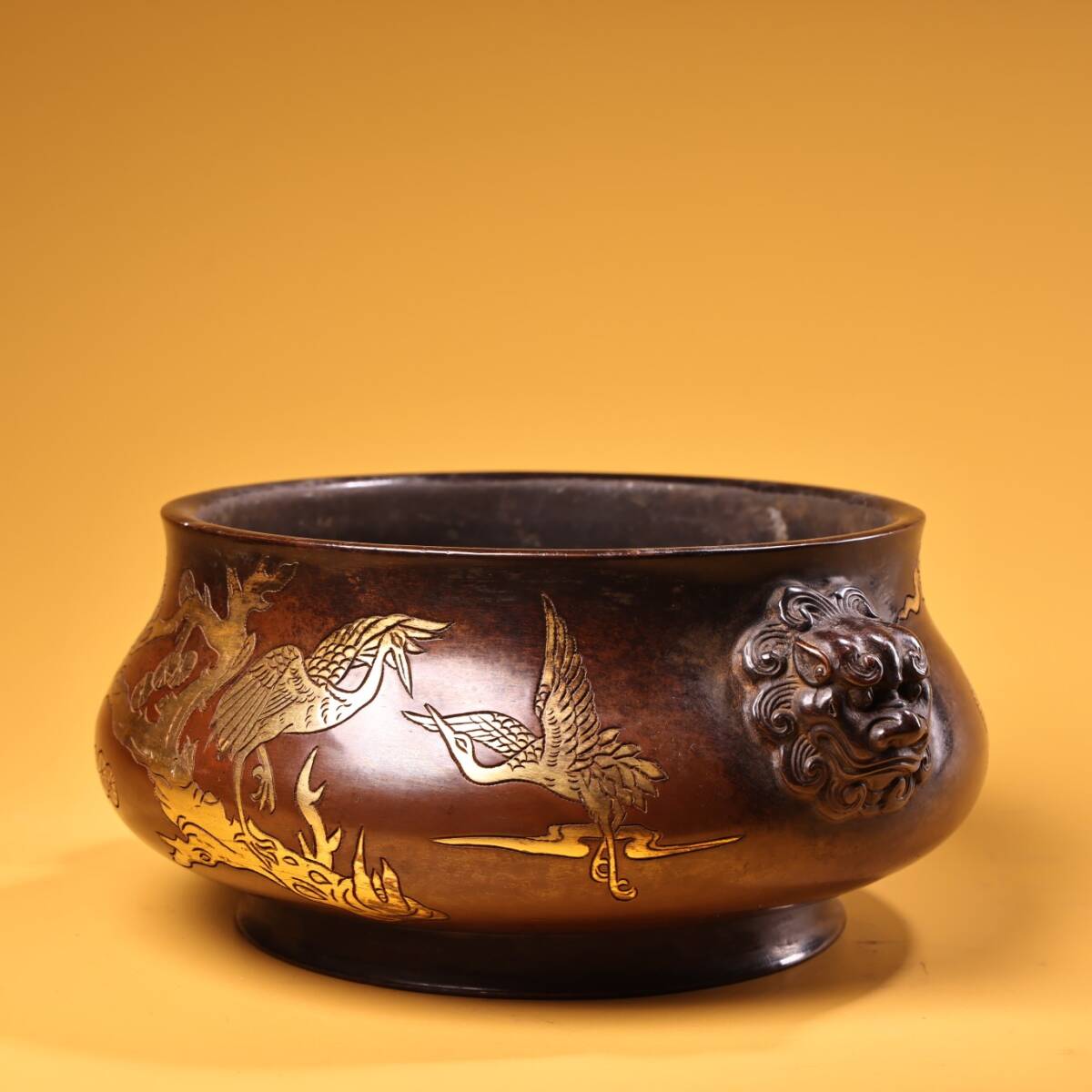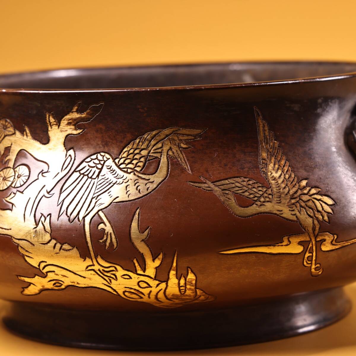 唐物 仏像 清時代 古銅 銅彫紫銅高浮雕鏨花工藝金香爐 仏教古美術 廃寺旧蔵 廃寺買出品 供養品き時代物 古置物 中国古玩 骨董品 旧家蔵出