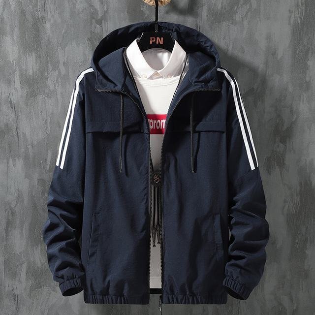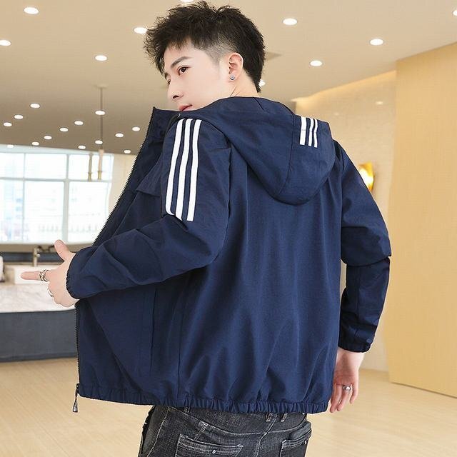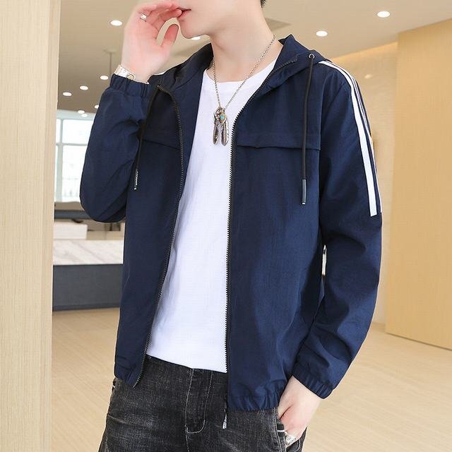 マウンテンパーカー メンズ春秋 ジップアップパーカー アウター ナイロンブルゾン 防風 ネイビー M