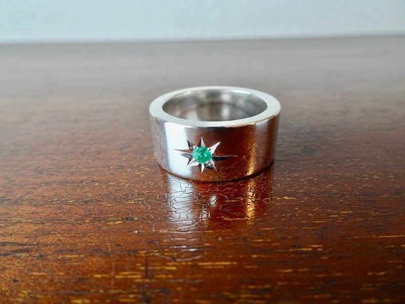 | ■ ■ 商品名: 『一つ星3mmエメラルド、幅1cm、平打リング』 ■ ■ |