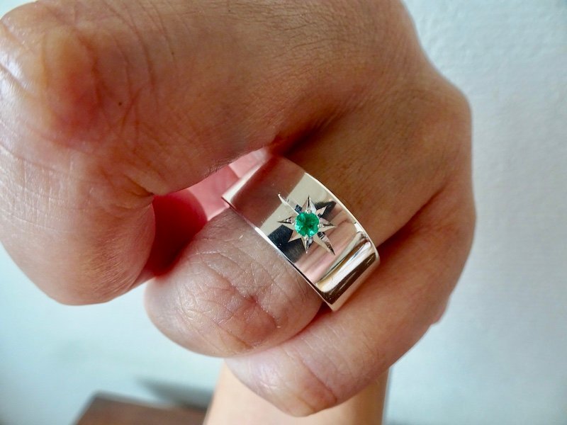 | ■ ■ 商品名: 『一つ星3mmエメラルド、幅1cm、平打リング』 ■ ■ |