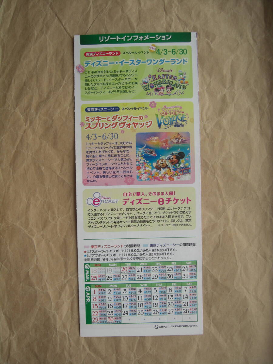 ディズニーシー Today トゥデイ 2012 3/20-4/2 インフォメーション チラシ パンフレット リーフレット デイジー