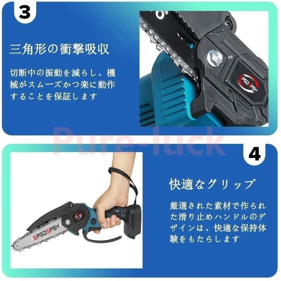 小型チェーンソーは小型で持ち運びが簡単で、電源コードや電源がない場所でも使用できます。女性でも簡単に操作・使用でき、長時