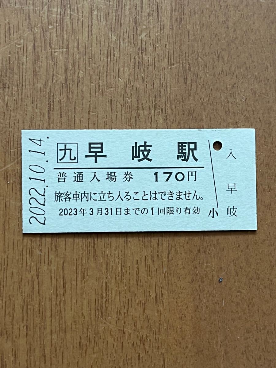 JR九州佐世保線早岐駅のB型硬券入場券です。(2022年)