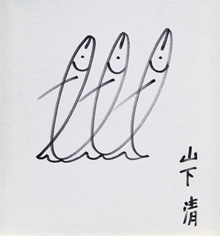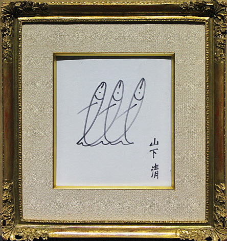 ■★山下清■ 【さかな】 原画 ペン画 3号 直筆サイン 鑑定書有り