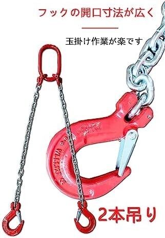 チェーンスリング2t 1.5m 2本吊り チェーン径6mm 吊りクランプ・吊りベルト チェーンブロック スリングフック【耐荷重2.0T】