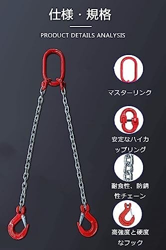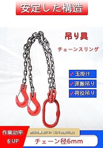 • 【2本吊りスリング】定格荷重:2.0t チェーンの長さ: 1.5m フック使用荷重:1ton チェーンの直径:6mm 吊り角度:60°以内