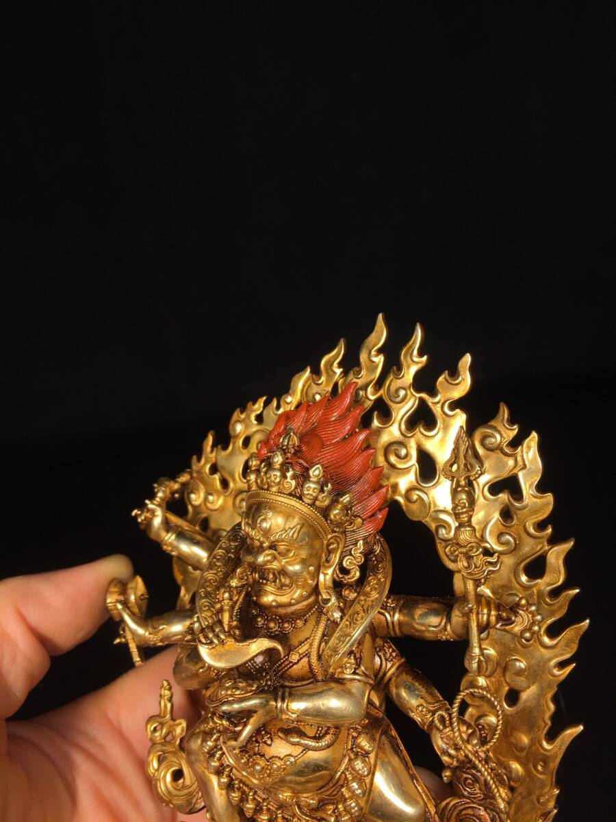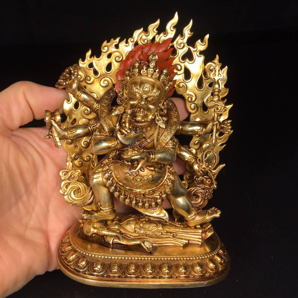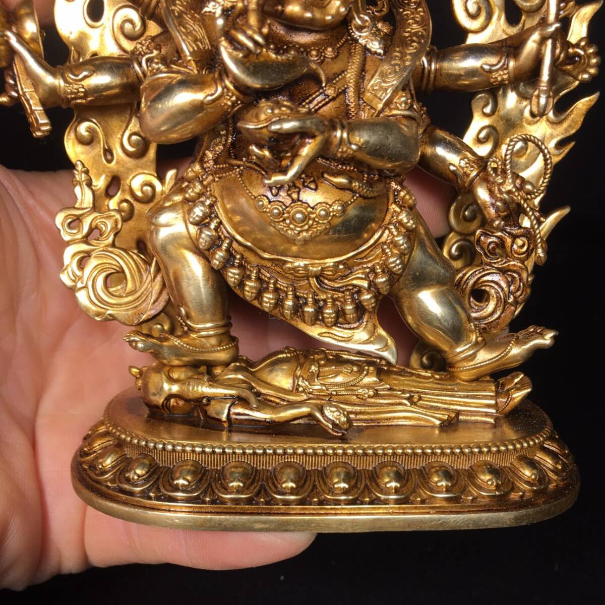 唐物 仏像 清時代 古銅 銅彫金六臂站神瑪哈拉佛像 仏教古美術 廃寺旧蔵 廃寺買出品 供養品き時代物 古置物 中国古玩 骨董品 旧家蔵出し