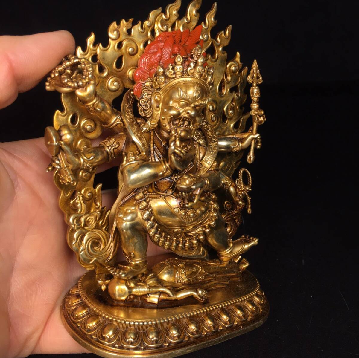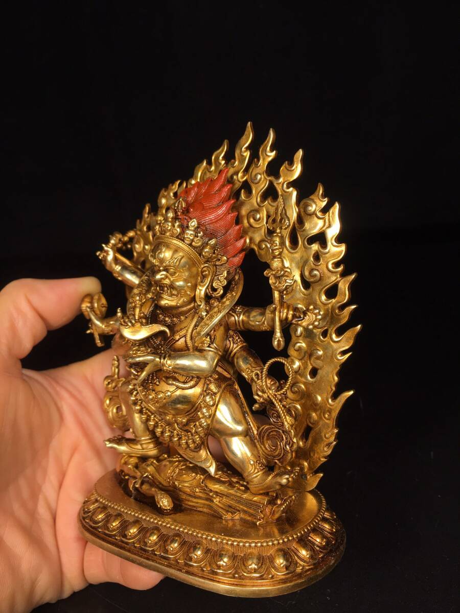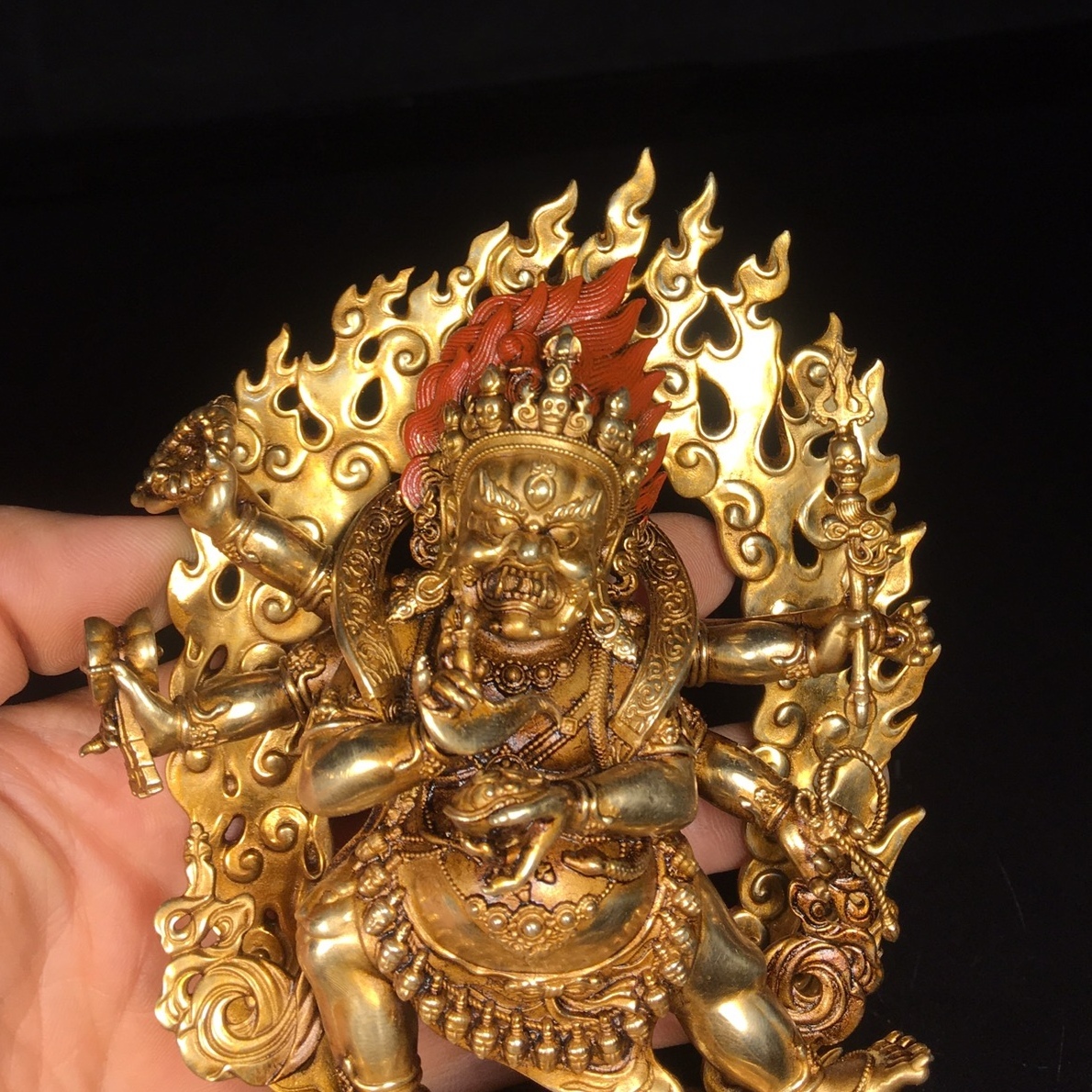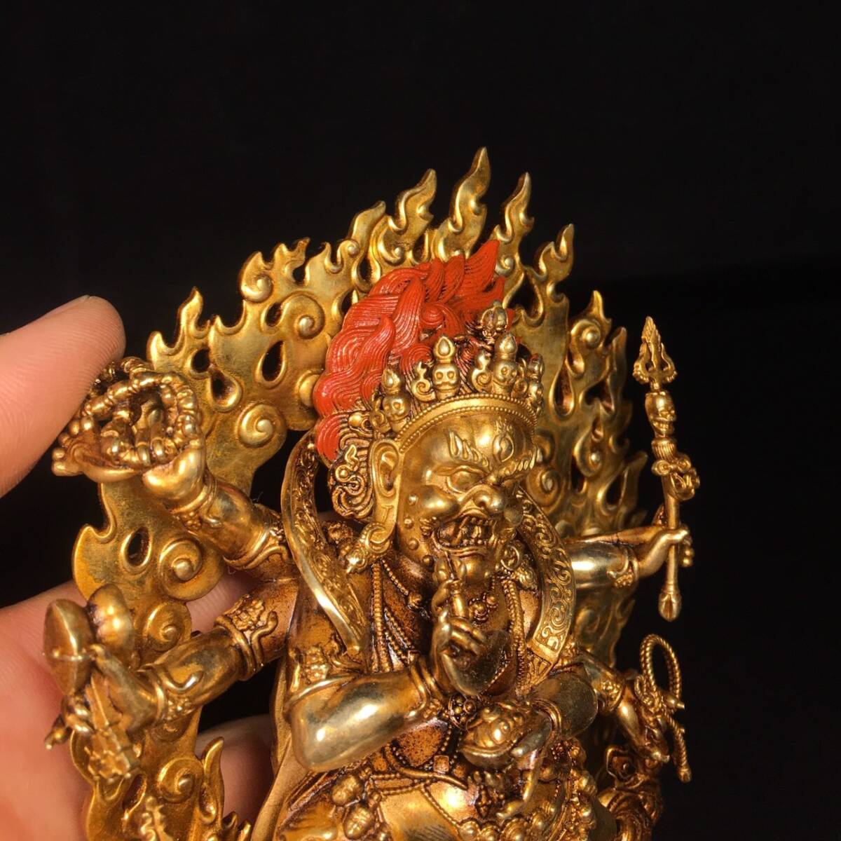 唐物 仏像 清時代 古銅 銅彫金六臂站神瑪哈拉佛像 仏教古美術 廃寺旧蔵 廃寺買出品 供養品き時代物 古置物 中国古玩 骨董品 旧家蔵出し