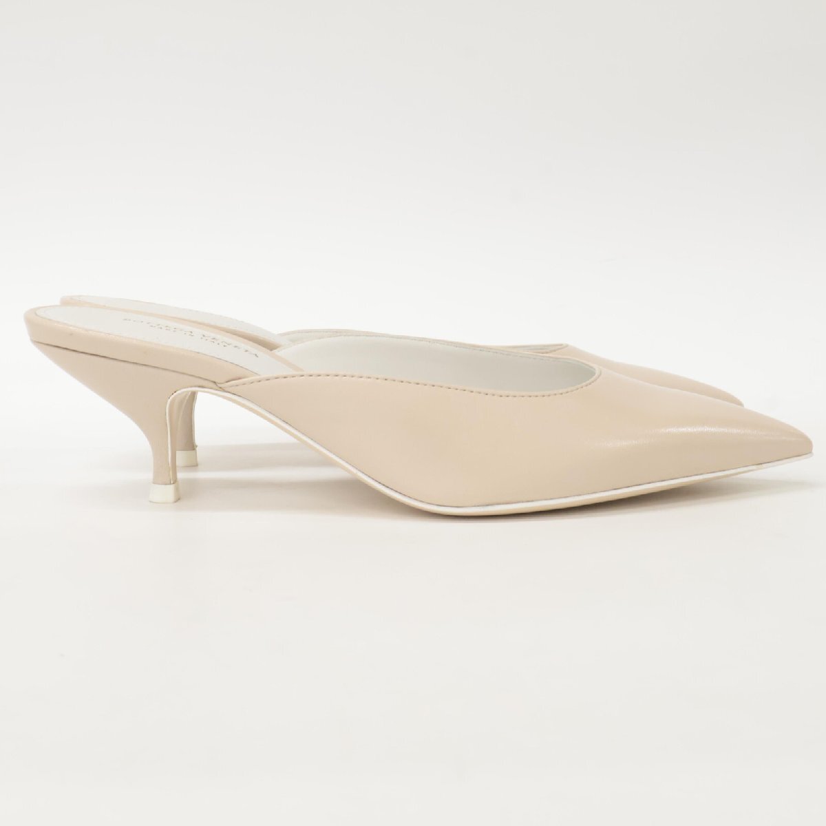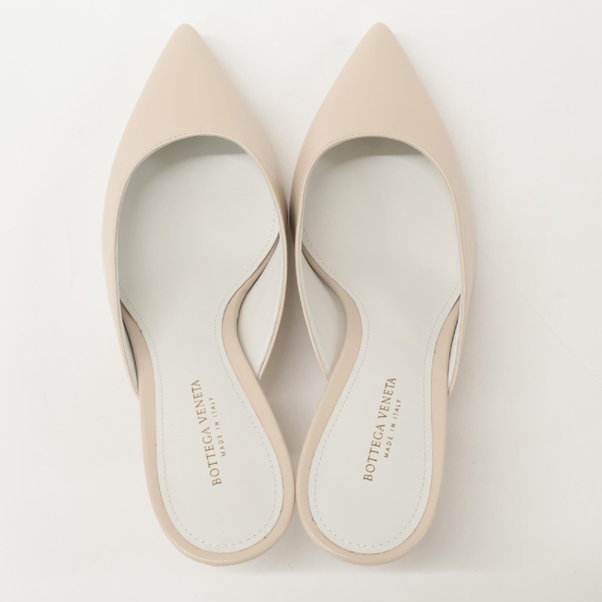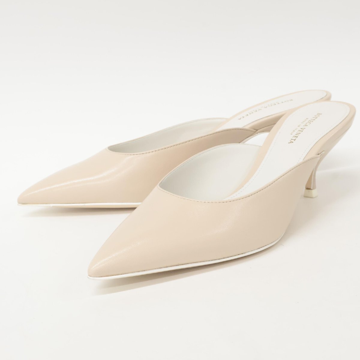 新品同様/ BOTTEGA VENETA ボッテガヴェネタ レザー ポンテッドトゥ ミュール/ サンダル 34 1/2 ベージュ レディース