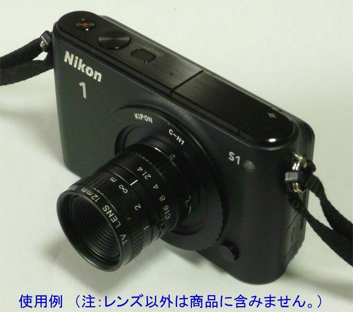 CマウントアダプタKipon C-N1を使って、ニコン1に取り付けました。(9枚目写真)