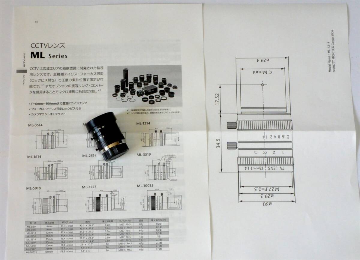 このカタログのML-1214掲載ページ(マクロ撮影表を含む)のコピーと図面のコピーを付けます。(6枚目写真)