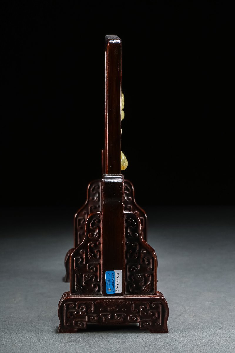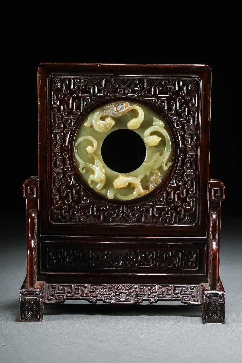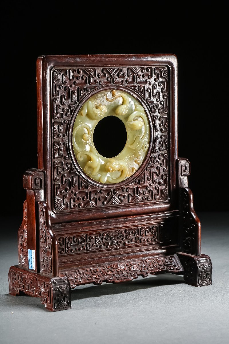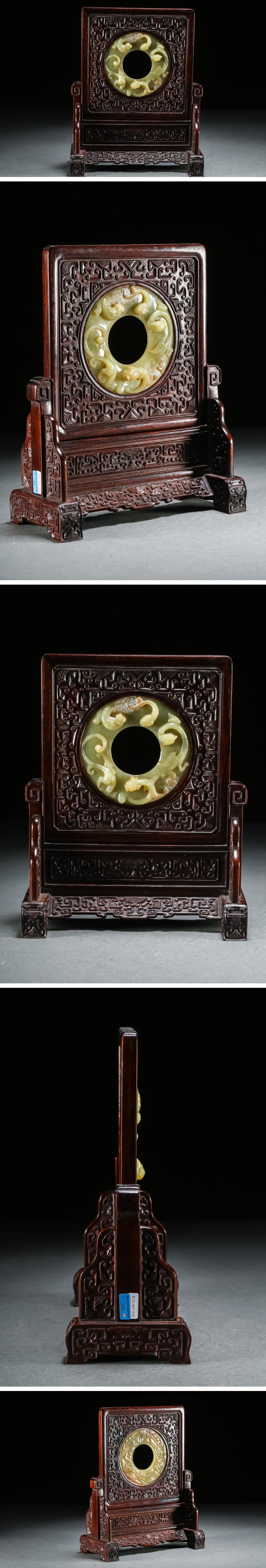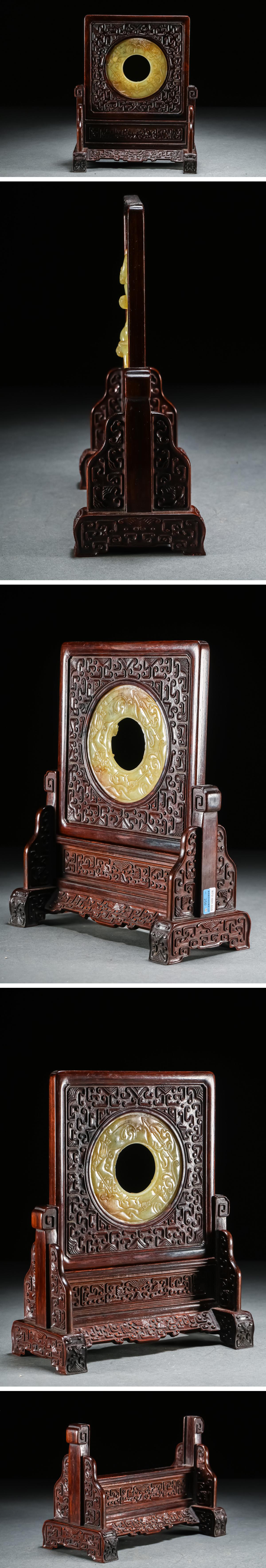 【清】某有名オークション購入 清時代 紫檀木象嵌和田玉 龍紋硯屏 当時物保証 材質保証 古置物 古擺件 中国伝来 時代コレクションZ-87