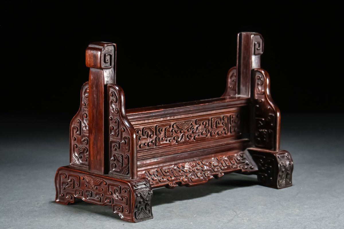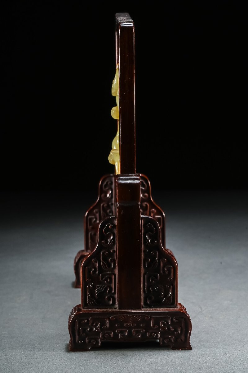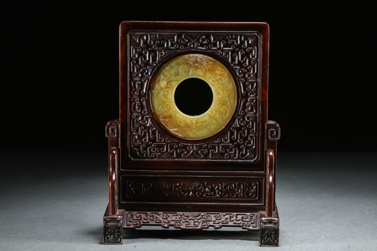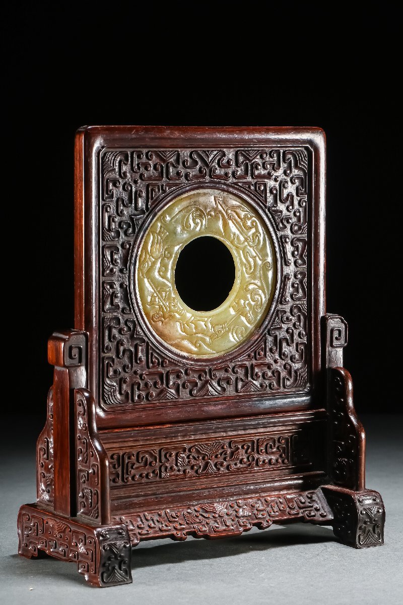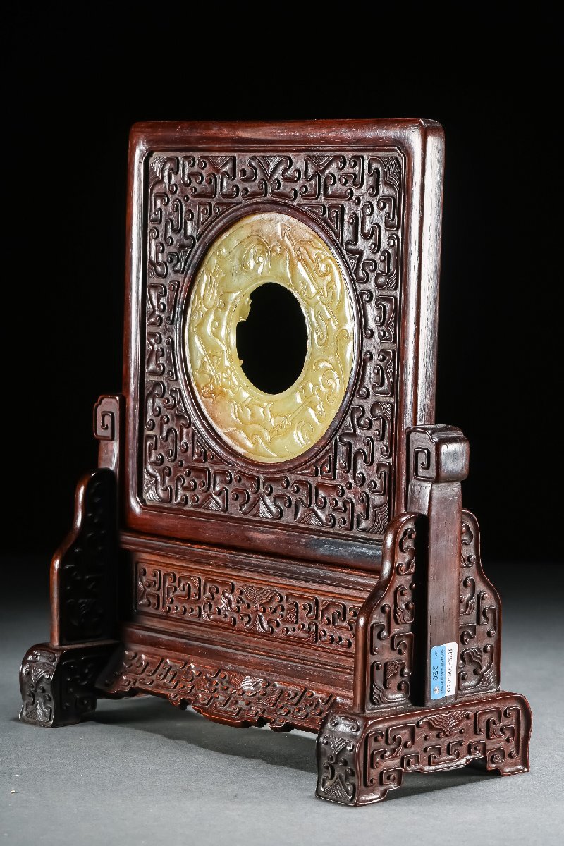 【清】某有名オークション購入 清時代 紫檀木象嵌和田玉 龍紋硯屏 当時物保証 材質保証 古置物 古擺件 中国伝来 時代コレクションZ-87