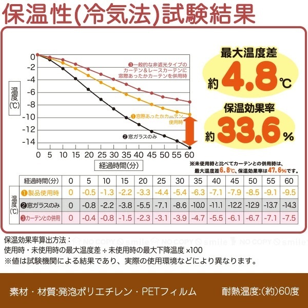 最大温度差4.8℃ カーテンフックを使って簡単取り付け。
