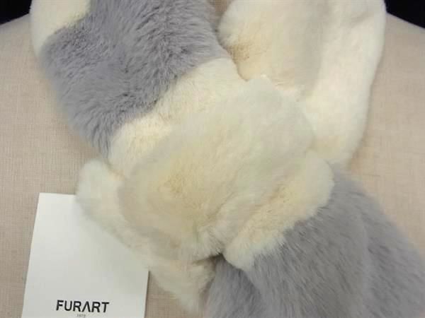 ■新品■未使用■ FURART ファーアート ポリエステル100% ティペット マフラー 防寒具 レディース アイボリー系×グレー系 DG0899