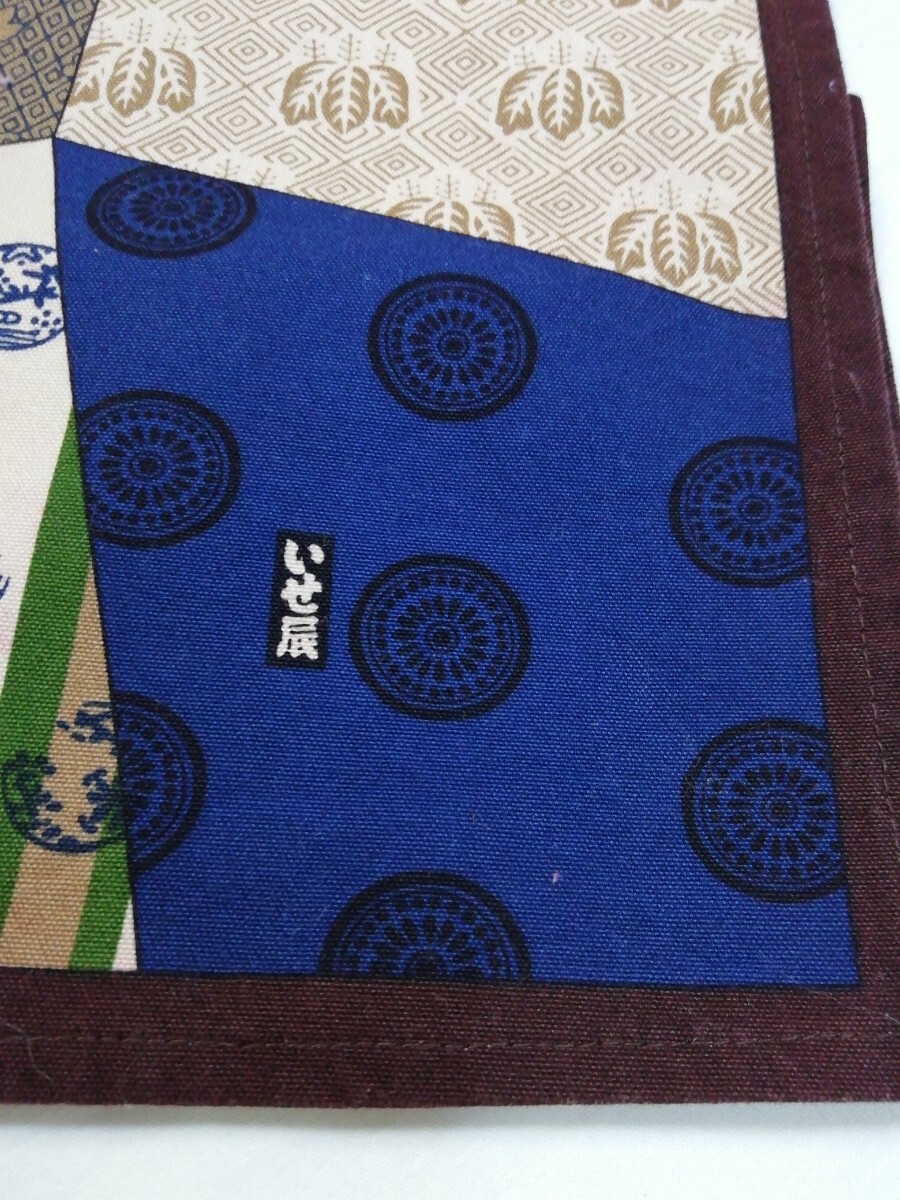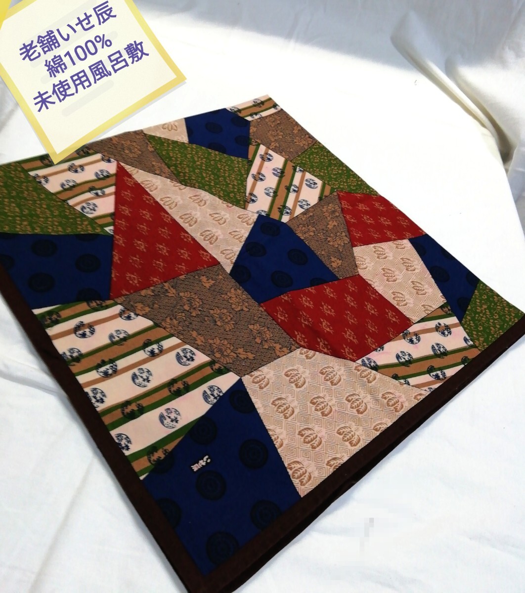 老舗いせ辰 人気名物裂模様 大判 綿 大判風呂敷 サイズ102cmx96cm 箱から出してタンスにて長期保管品していました。