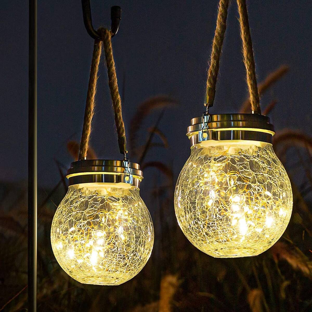 ソーラーライト ガーデンライト 防水 屋外 照明 ガーデニング雑貨 おしゃれ 庭 自動点灯 電球色 置物 吊り下げ 2個セット