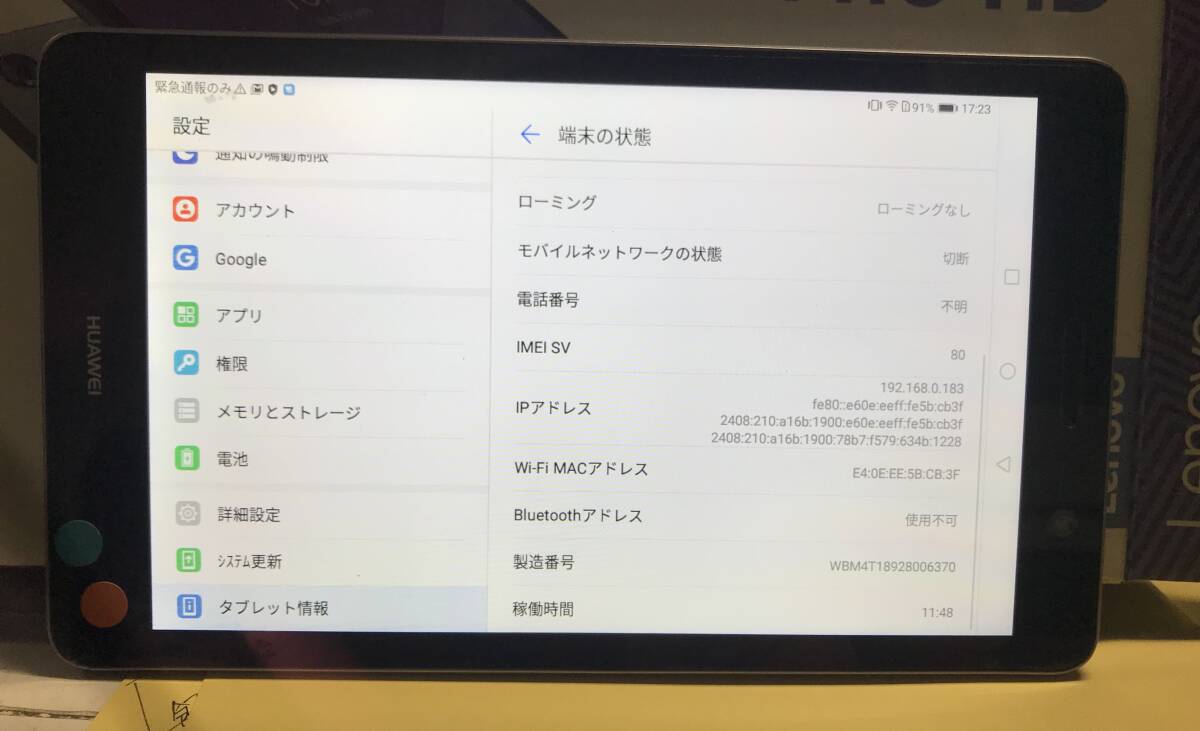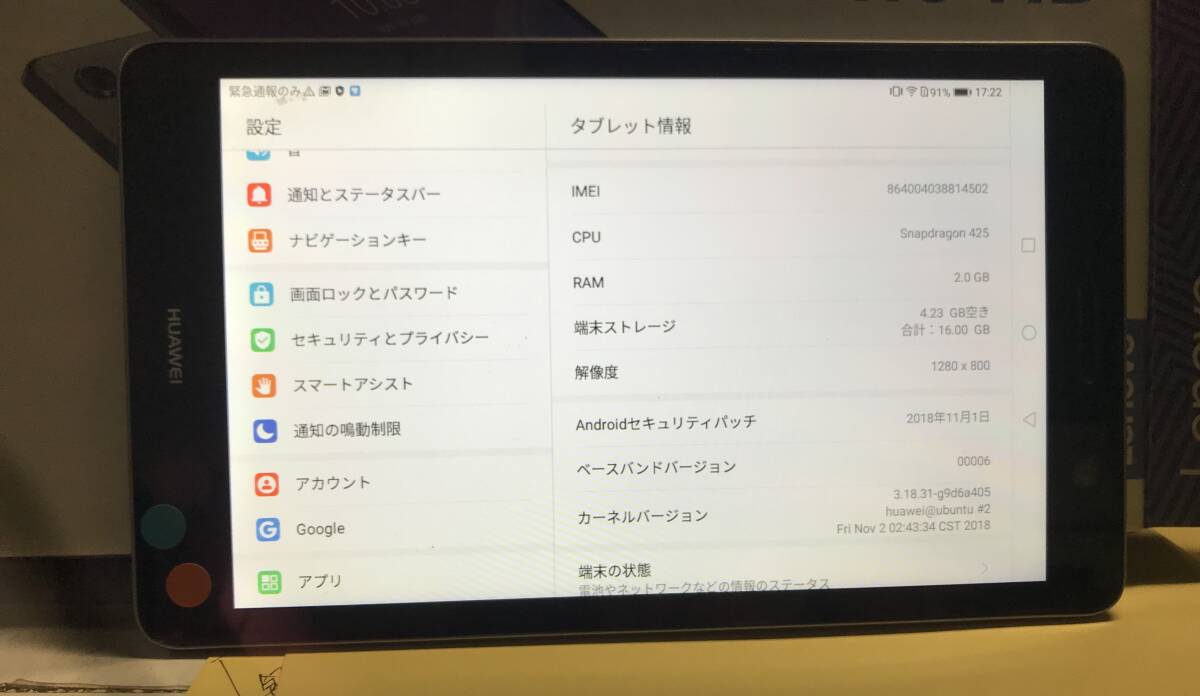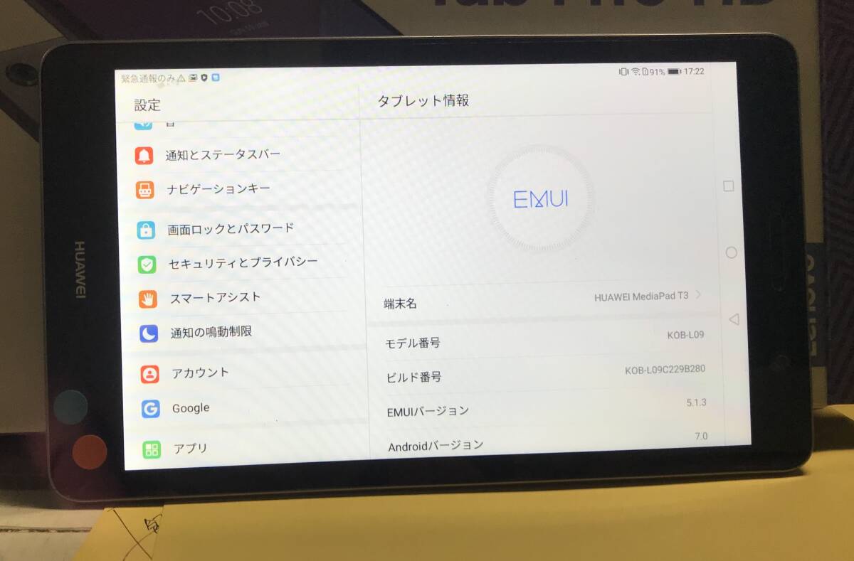★動作品 HUWEI MediaPad T3 KOB-L09/スペース グレー/16GBメモリ/カメラ/8インチ ダブレット 中古品★