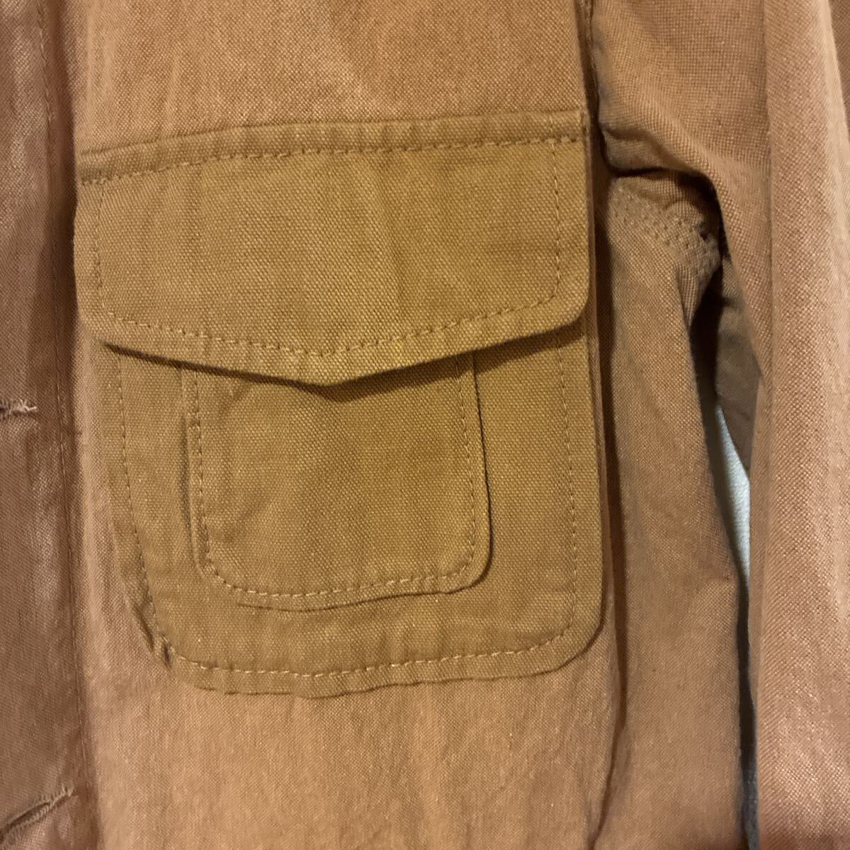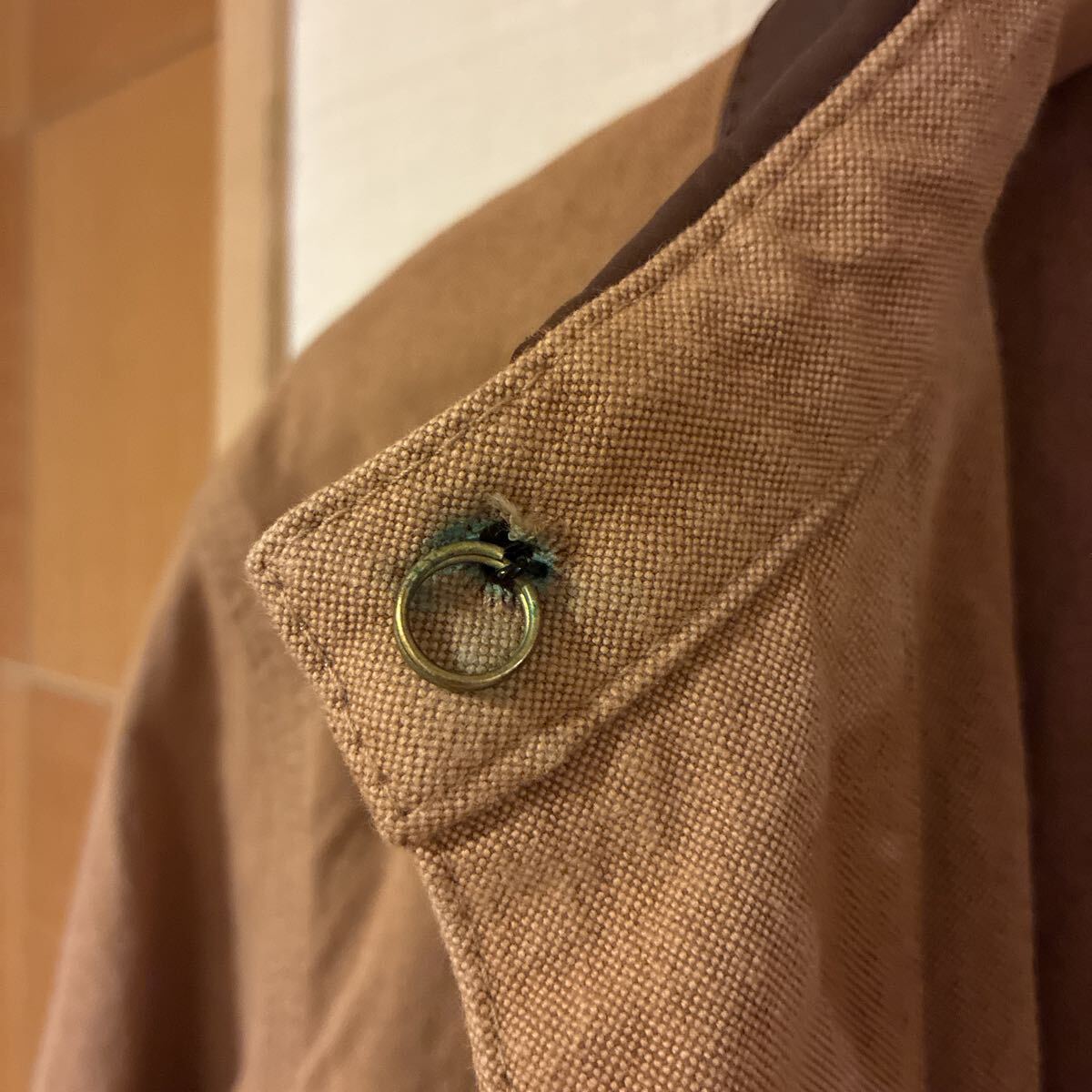 使用状況: 中古ですが着用歴は少なく、全体的に状態は良いと思います。一部チェンジボタンの止め金具に、青錆が発生しています。(ビンテージを再現するためにあえて青錆が生じる銅が使われている模様)。これは表から見えず目立ちません。また、取り除けるものですが、あえて(ヴィンテージ再現衣類のため)そのままの状態での出品です。