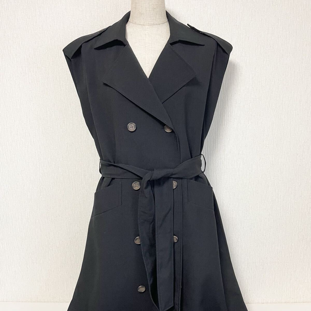 即決☆JEANASIS ジーナシス ノースリーブ トレンチコート ロング ジレ エポーレット ブラック 新品 タグ付き 未使用