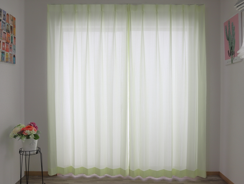 お買い得 外から見えにくい遮像レースカーテン 幅150㎝ 丈176cm(2枚組) soleiyu(グリーン)送料込み(一部地域除く)