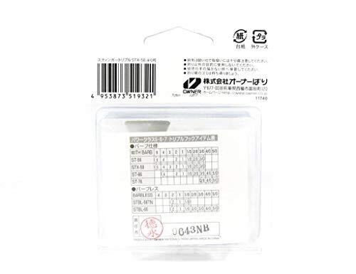 「OWNER(オーナー)トリプルフックSTX-58スティンガートリプルエクストラ6号11740」▼4953873519246▼(商品説明)スティンガートリプルエクストラ・シルバー 6 11740・・Style:スティンガートリプルエクストラ・主な対応魚種:ブリ ヒラマサ マグロ・号数:6号説明 強く、鋭い。それが釣りばりの本道です。 PE対応、次世代トリプル、STX-58登場] タフワイヤーを採用した初のトリプル。 まずは青物・ヒラスズキ対応のパワークラス「5」から。 PE対応!次世代トリプル「STX-58」発売開始!! 1PEの負荷に耐える強度 タフワイヤー素材を採用したことで、同じ線材径の従来ST-56比較では全サイズが10%以上の強度向上を達成。 2PEの感度とリンクする鈎先の鋭さと角度 鈎先は従来比「約5%」鋭角ロングテーパー化。バーブを速やかに越え貫通する絶妙のストレートポイント。 3PEのダイレクトな負荷から身切れを抑え結果としてバラしを防ぎます。 4従来のST-56と重量互換性あり、ST-56とは各サイズ、重量誤差は最大でも僅か7パーセント。 56ユーザー様は、フック重量互換性がありますので、特にトップウォーターアングラーには重宝します。 トッププラグに最適な#4/0が追加!