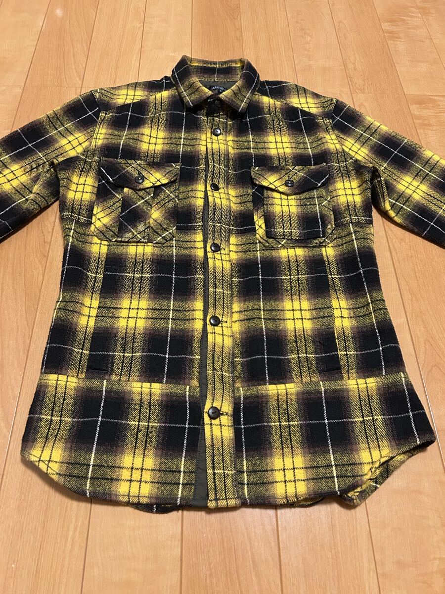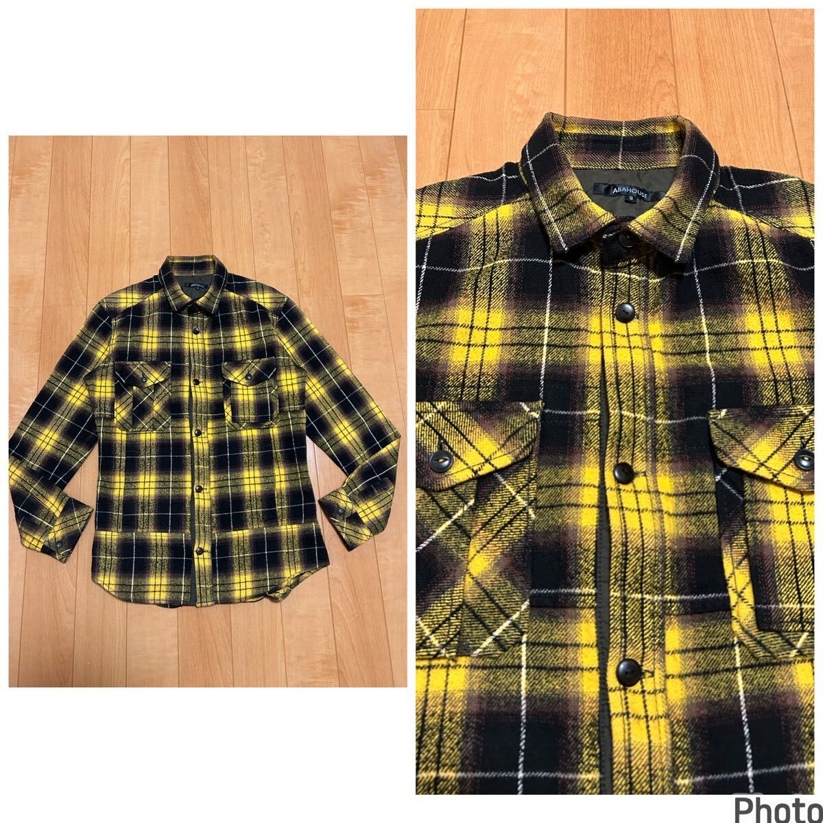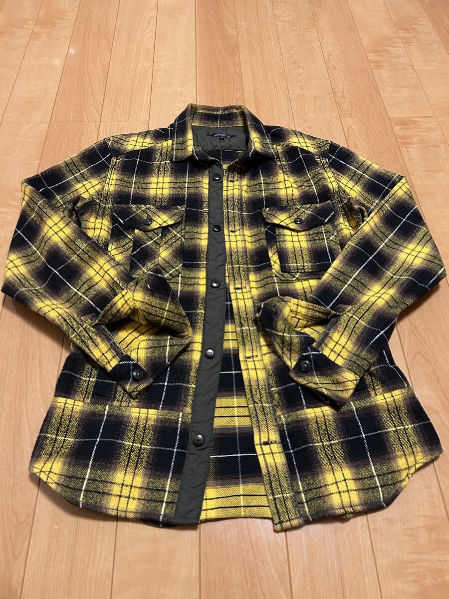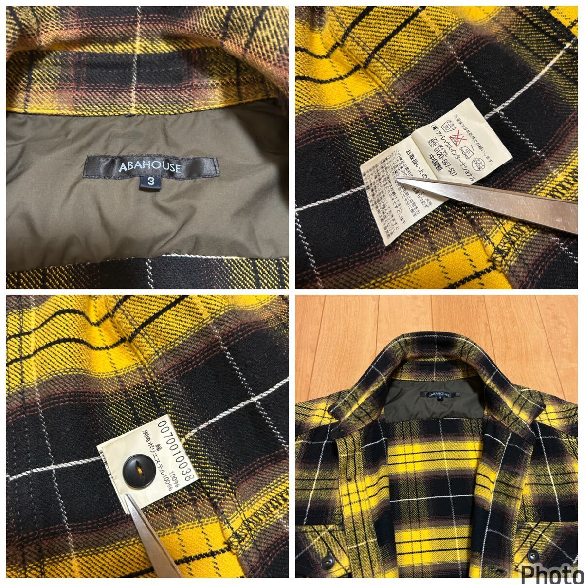 着用少な目.美品☆ABAHOUSE/アバハウス サイズ3 長袖ヘヴィネルシャツ.CPOジャケット シャドーオンブレビンテージチェック柄&猫目他ボタン