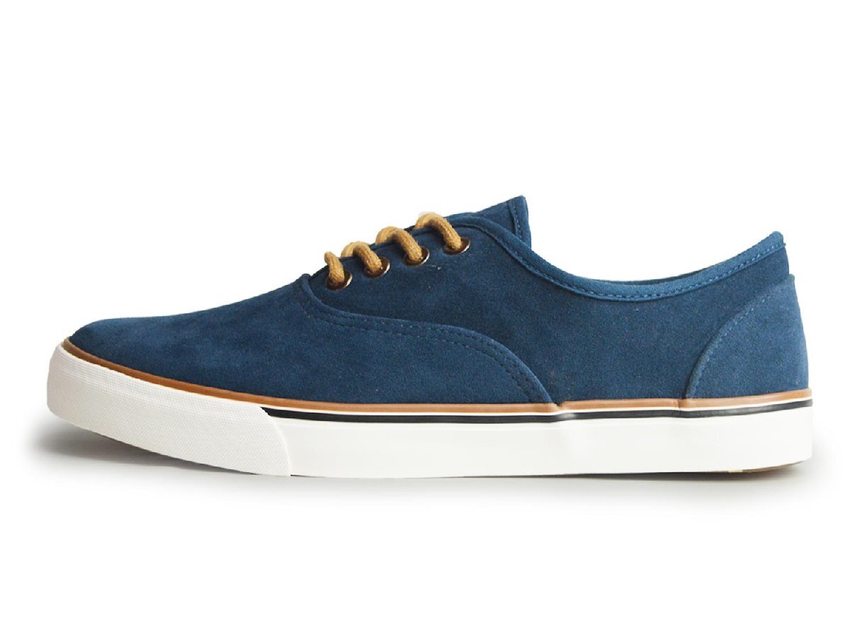 新品■25cm メンズ カジュアル デッキシューズ 軽量 スニーカー 紐靴 フラット コンフォート クッション スエード 配色【エコ配送】