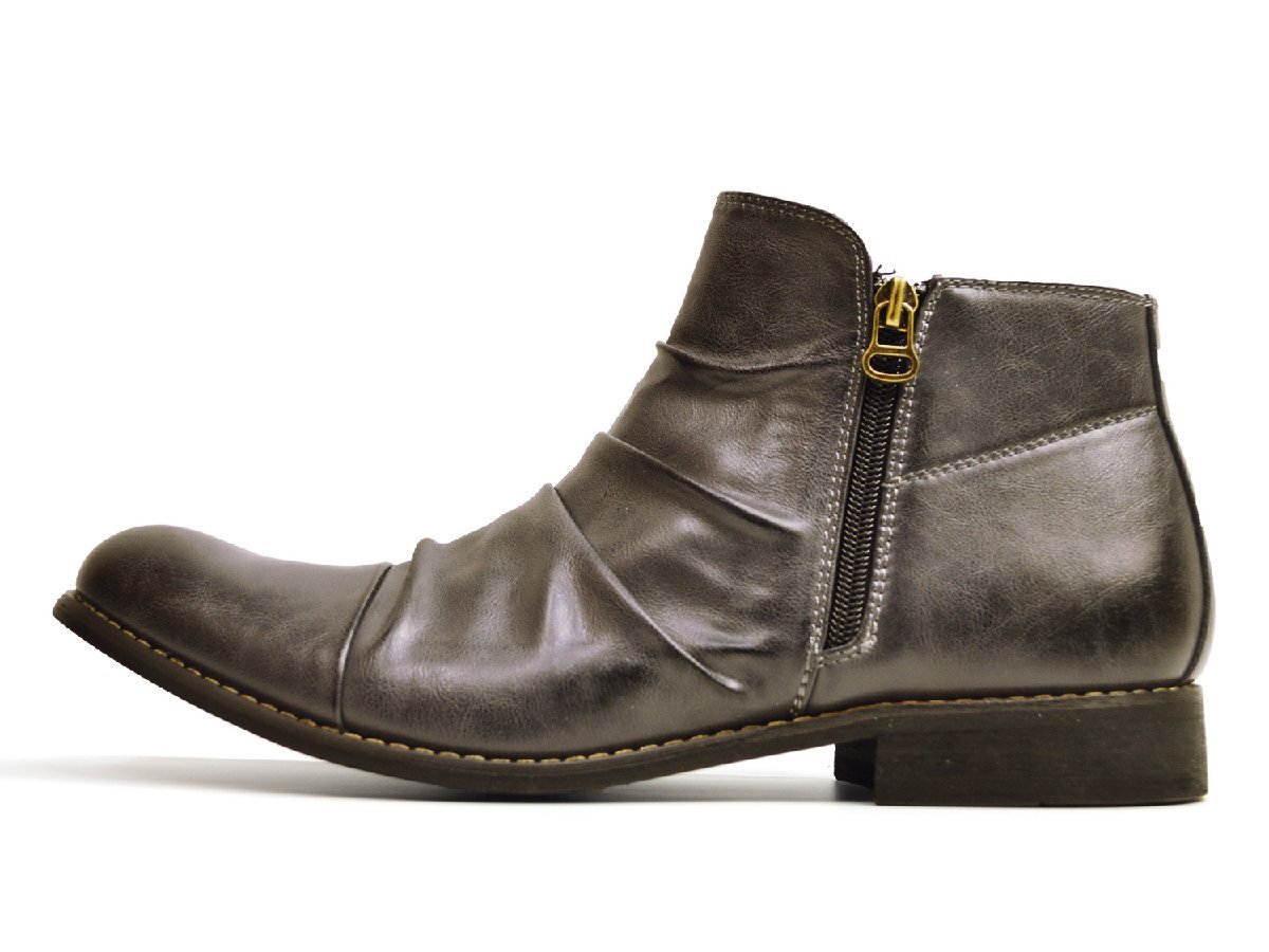 新品■ Wサイドジッパー ドレープブーツ Men's アンティーク ブーツ ショート丈 アンクル丈 メンズ キレイめ ビンテージ 男 靴 ze2789
