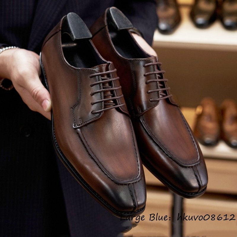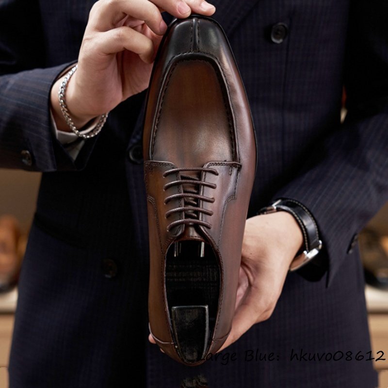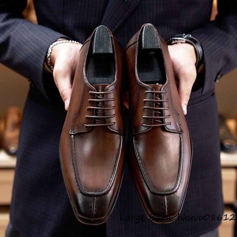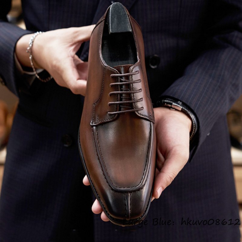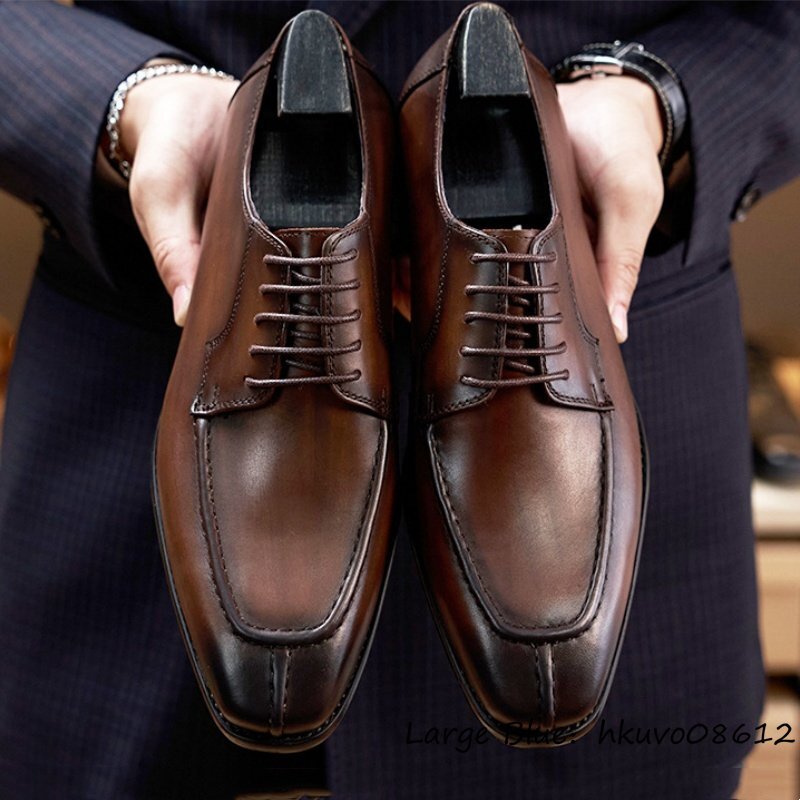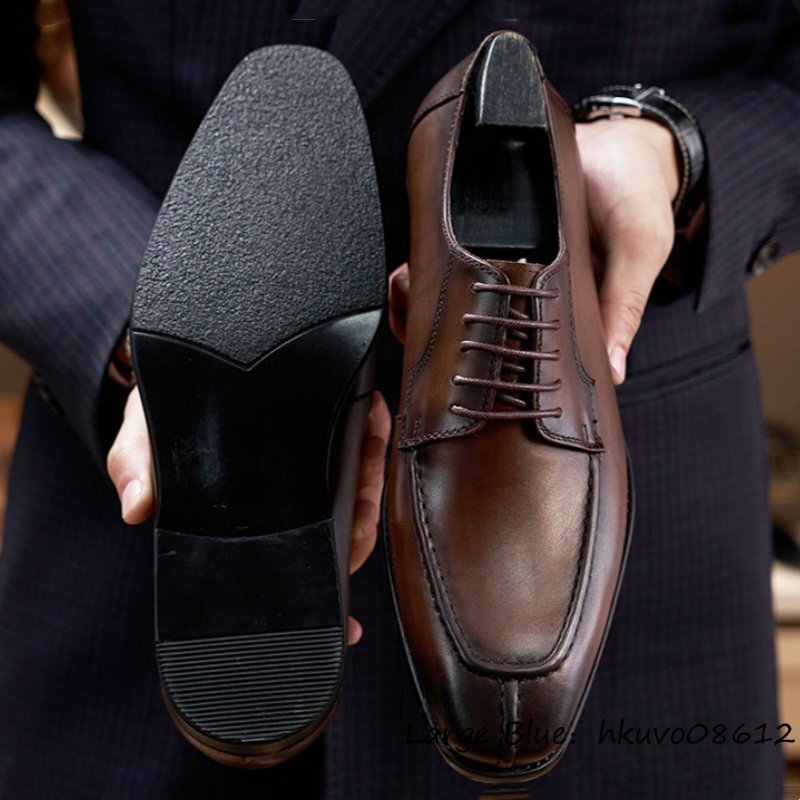 最上級◆ビジネスシューズ メンズシューズ 手塗り上げ 職人手作り 本革 レザーシューズ 牛革 新品 紳士靴 革靴 フォーマル ブラウン 25.0cm