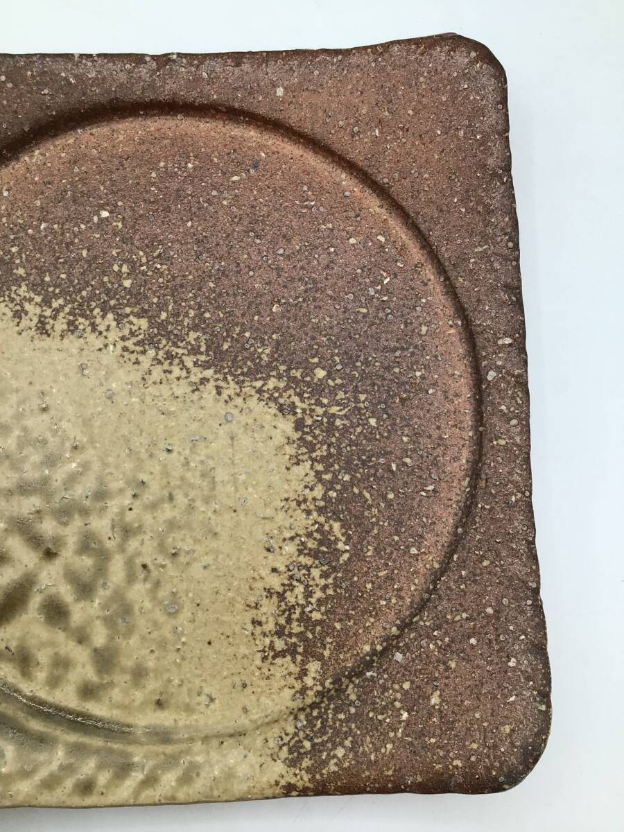 M5110 高橋楽斎作 信楽焼 方円皿 約19.3cmx19.3cm 共箱 陶歴 和食器 お皿 中皿 未使用長期保管品