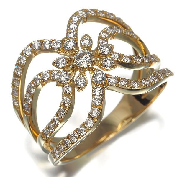 上質ダイヤモンドをセレクトした輝き広がる美しいジュエリー。ボリュームあるデザインながらも嫌味を感じさせない美しい透かしで描かれた演出が指元にエレガンスを与えてくれます。 |