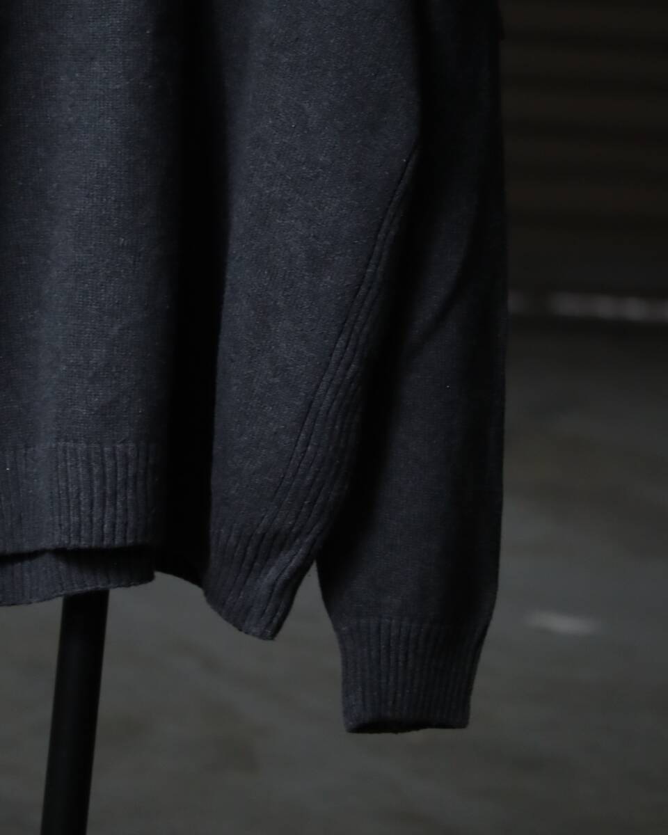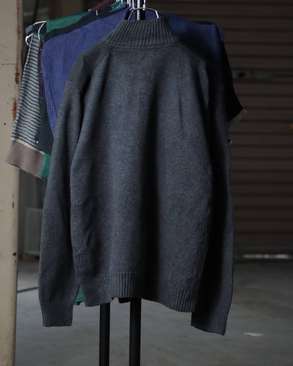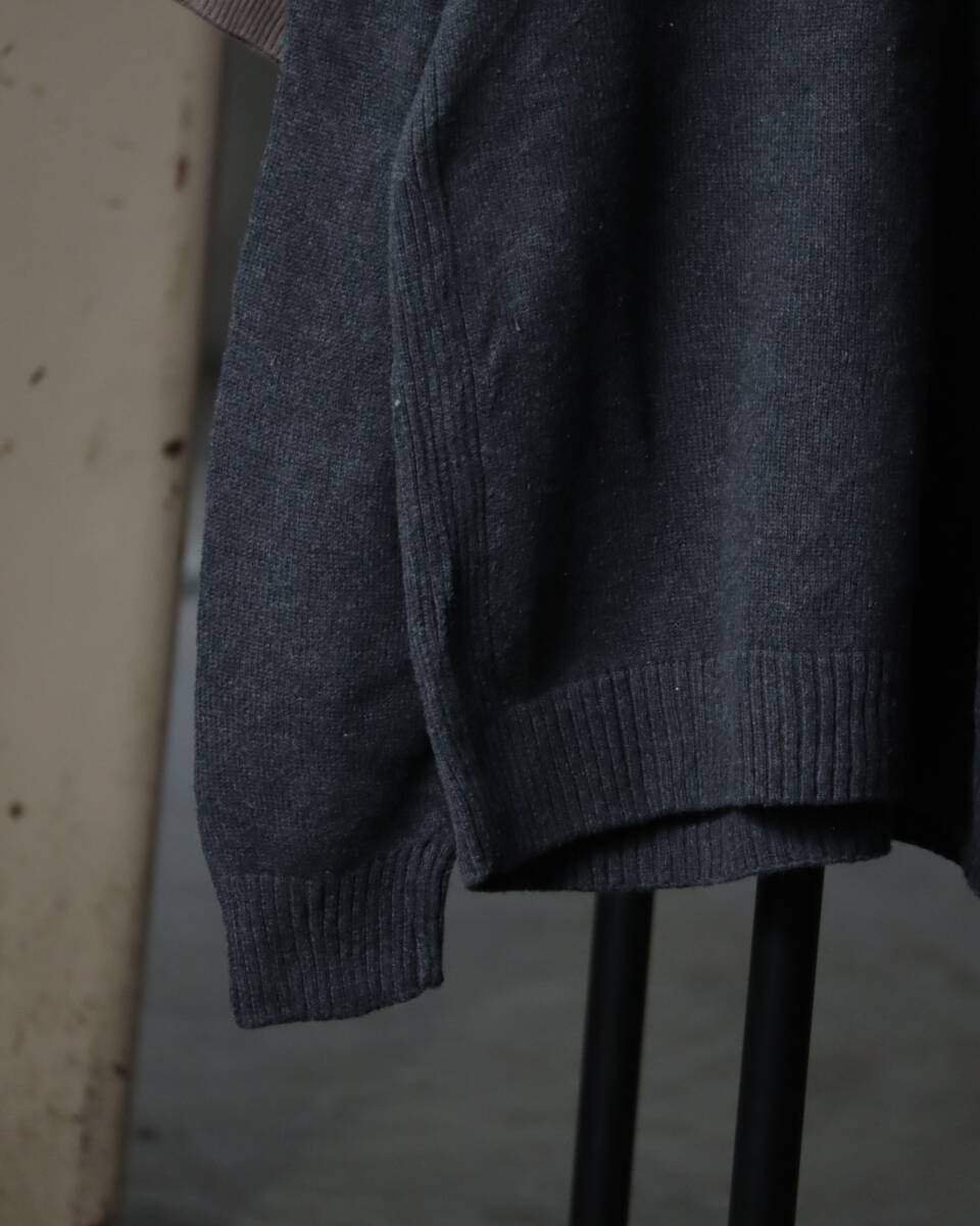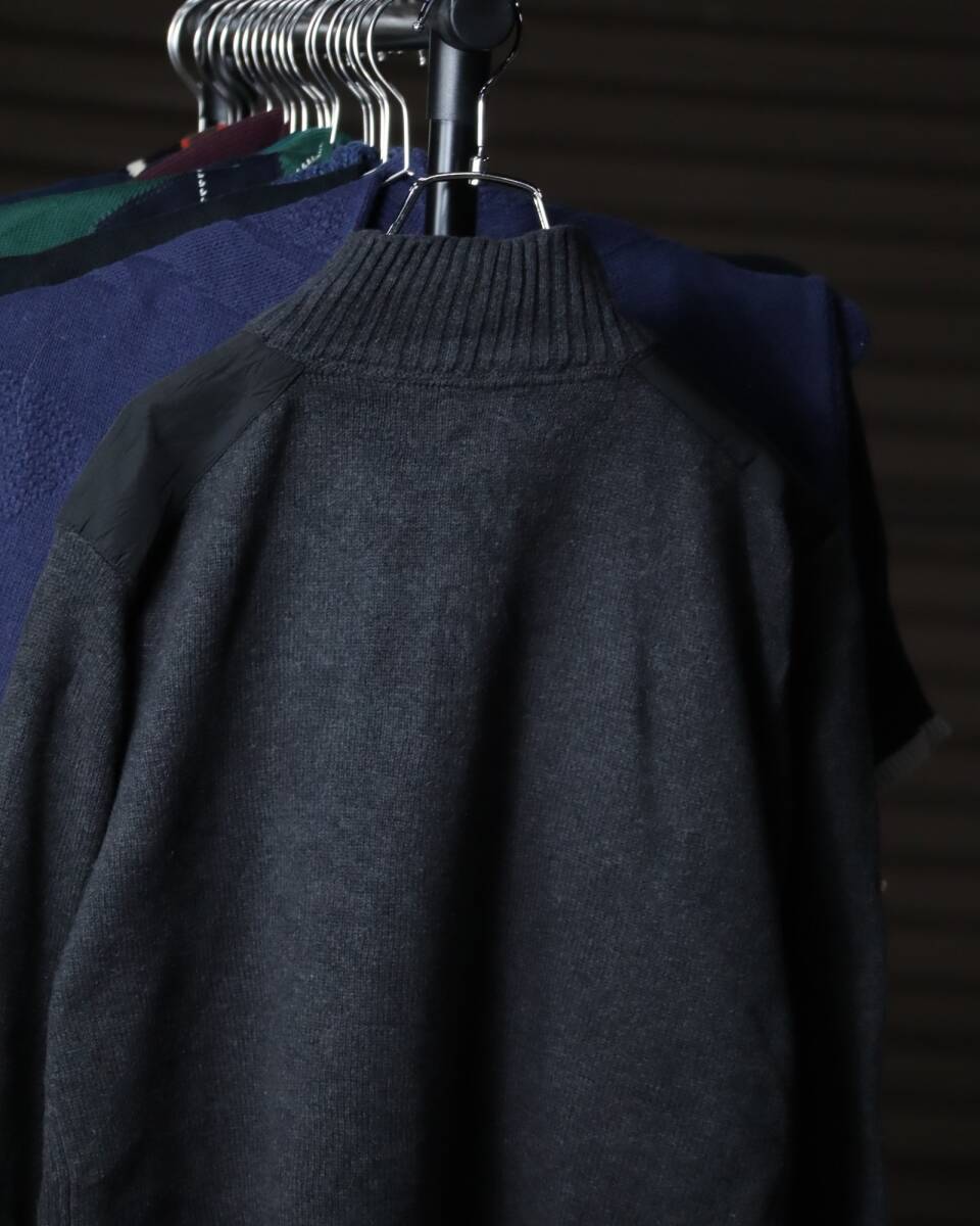 K523/ half-zip up × shoulder patch military design cotton knit sweater ミリタリー ハーフジップ コットン ニット セーター グレー