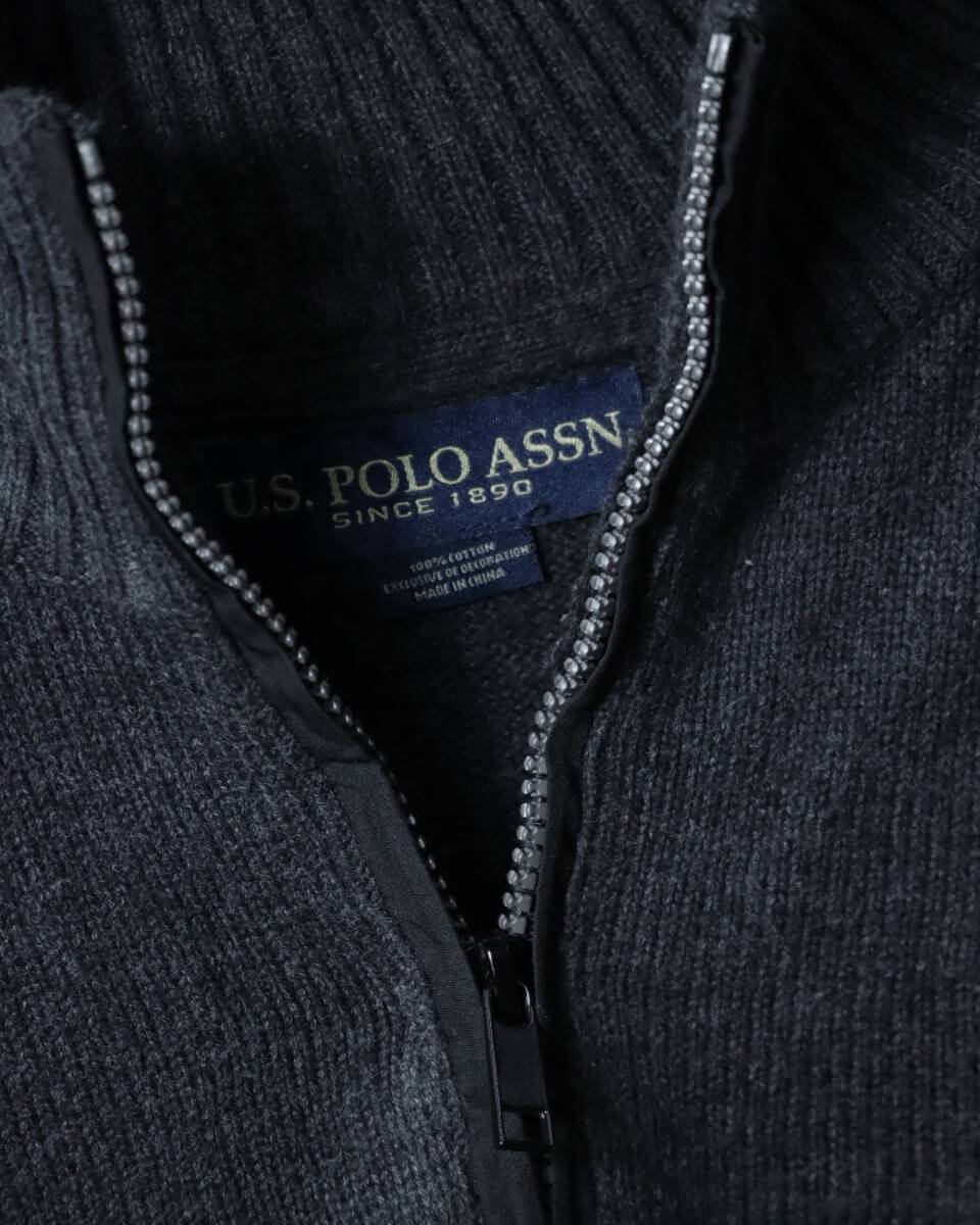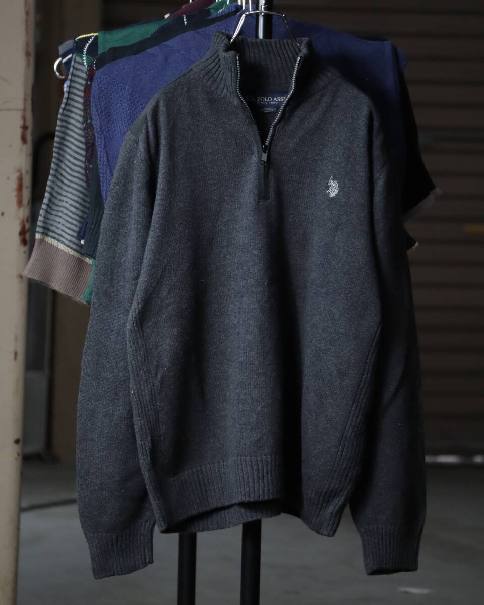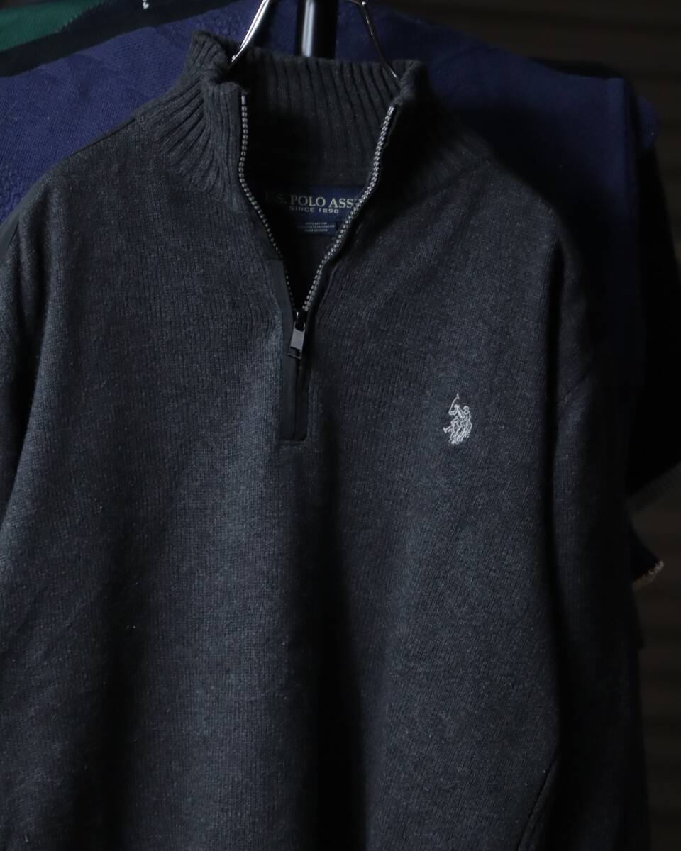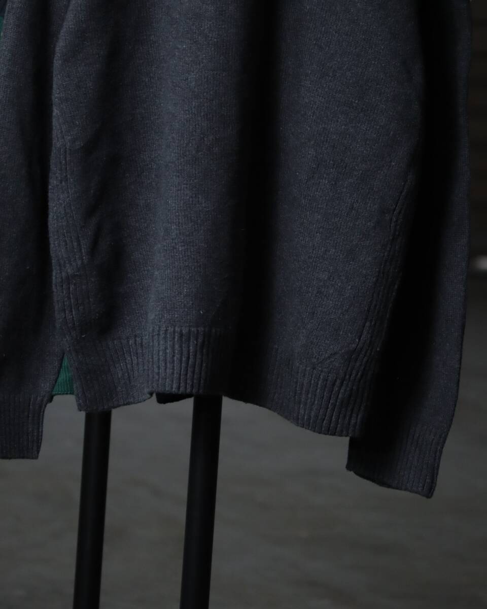 K523/ half-zip up × shoulder patch military design cotton knit sweater ミリタリー ハーフジップ コットン ニット セーター グレー