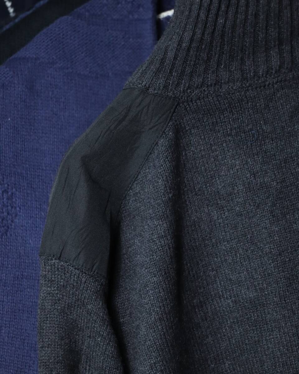 ▼Item / half-zip up × shoulder patch military design cotton knit sweater