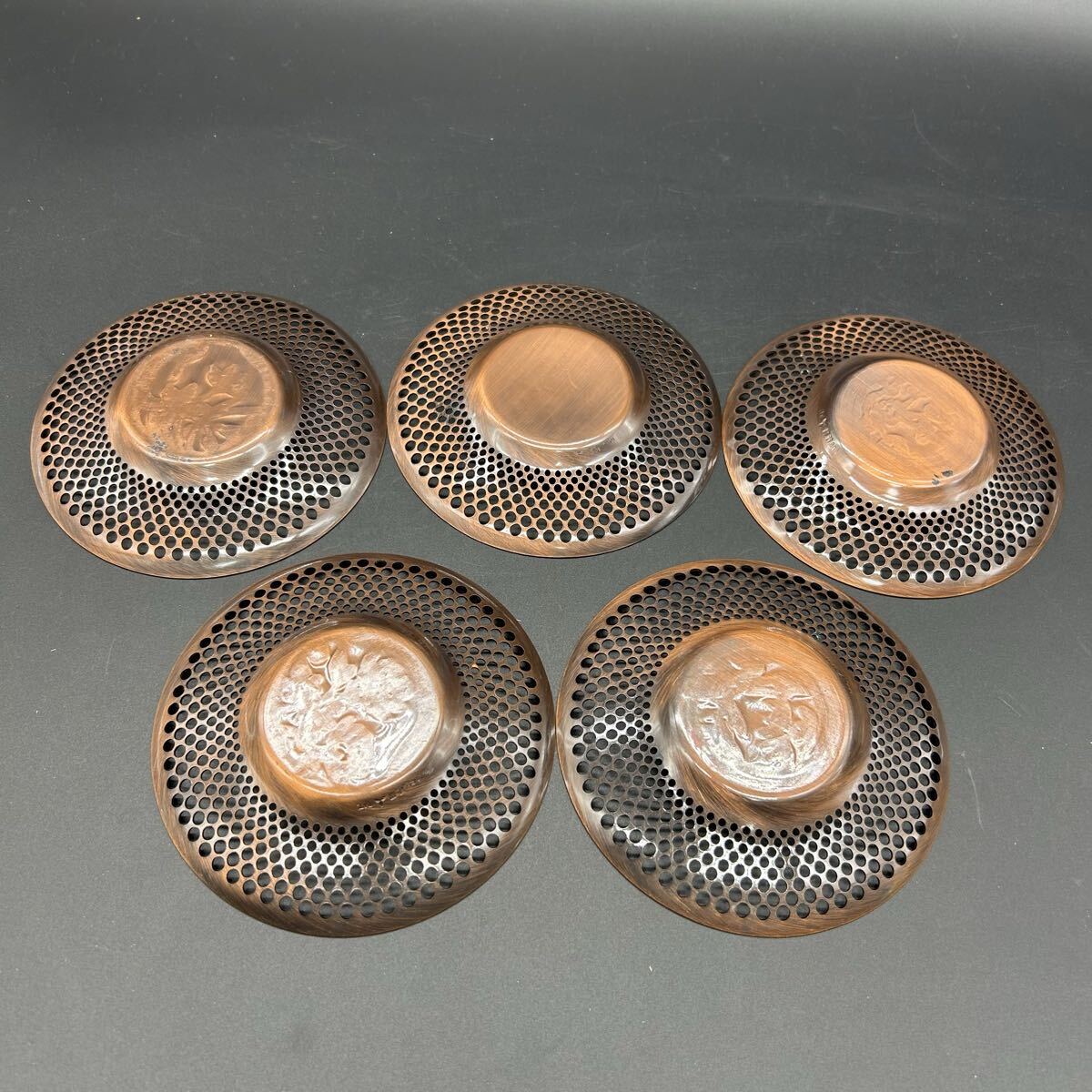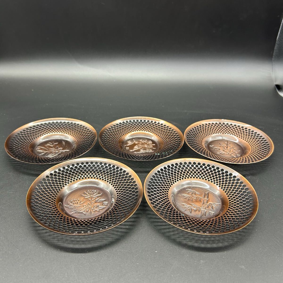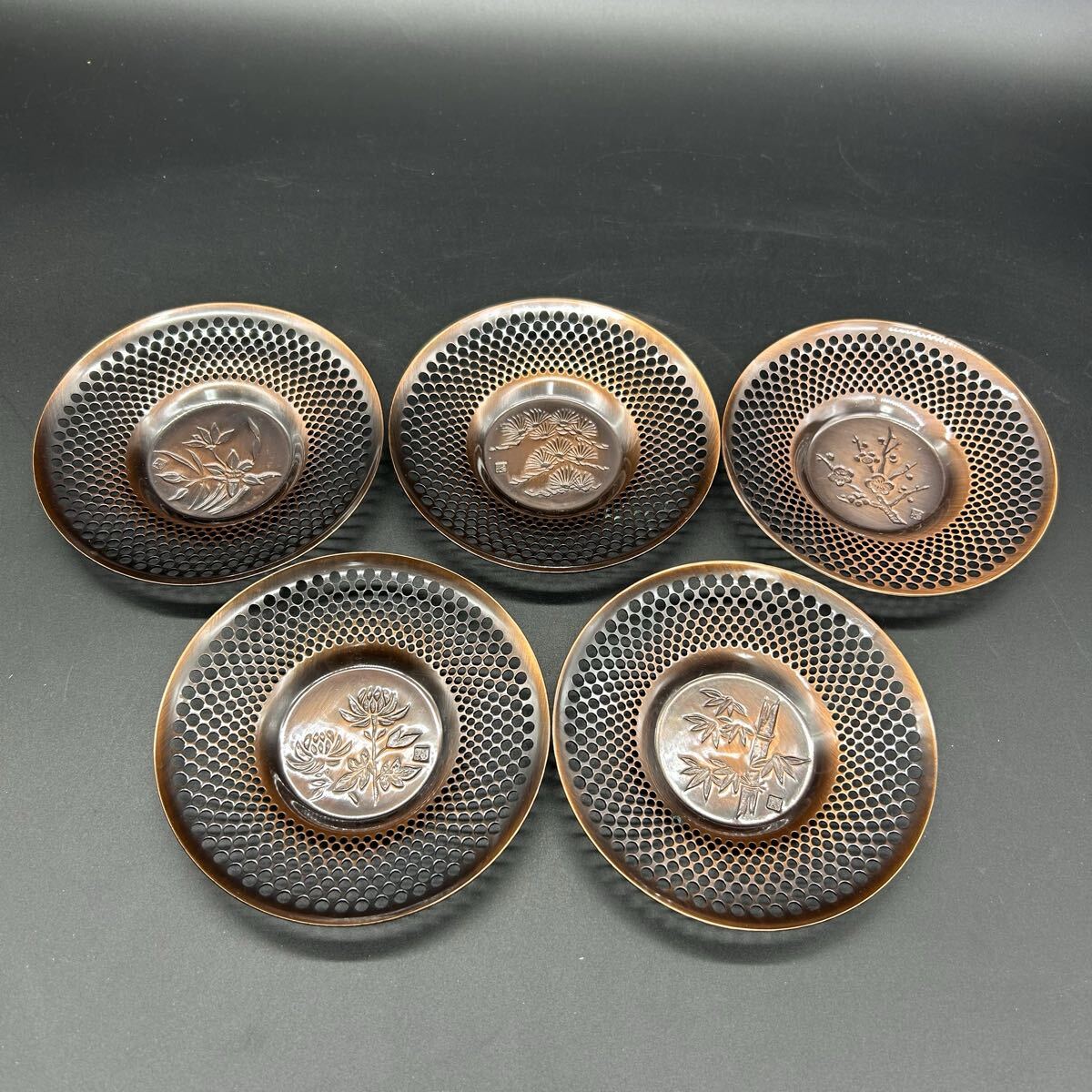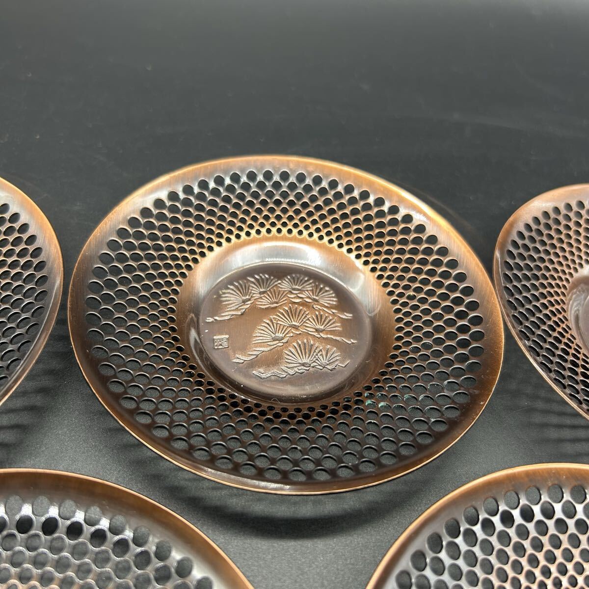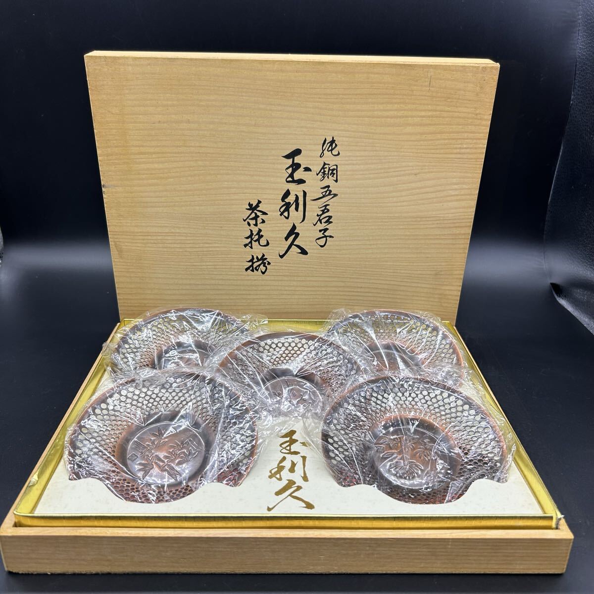 純銅 五君子 玉利久 茶托 茶托揃 金属工芸 茶器 オ19
