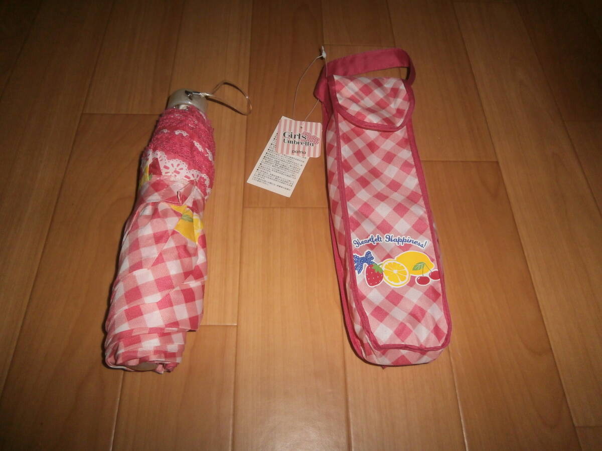 | 新品★Girls Umbrella★チェック柄 折り畳み傘★ピンク★親骨長さ55センチ★ | ||