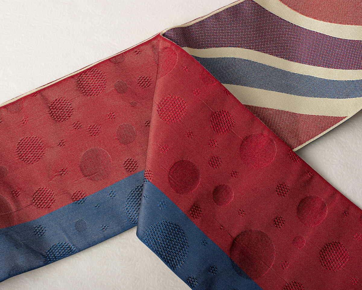 程よくハリ感のあるしなやかな織りで締めやすい袷仕立て(小袋帯 端処理済)